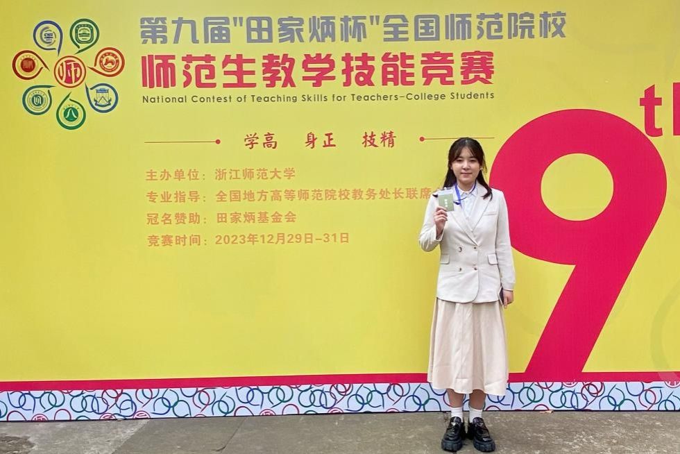 近日,第九屆“田家炳杯”全國師范院校師范生教學技能競賽總決賽在浙江師范大學舉辦。數學與物理學院2021級數學與應用數學1班的韋柳伶同學入圍全國前10%,獲得全國一等獎(全國數學學科獲一等獎人數僅17人)。