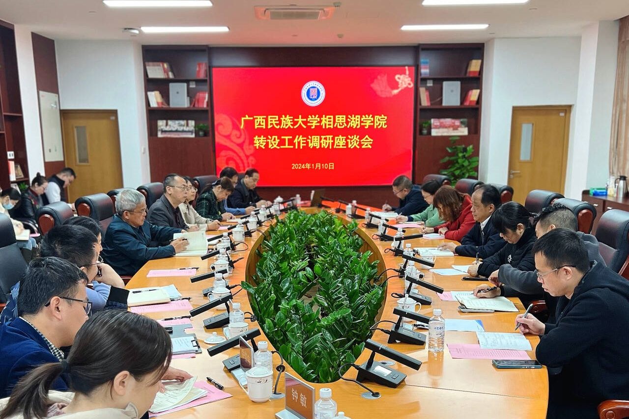 【校領導到廣西民族大學相思湖學院調研轉設工作】1月10日,黨委常委、副校長蔡高根到廣西民族大學相思湖學院調研轉設工作時表示,要加快辦公用房、教學樓、學生公寓等樓棟的建設,充分滿足師生需求;要做好資產核銷、資產移交、賬目移交,完成資產清算報告;要完善工作計劃,加快工作進度,切實做好自治區教育廳專家進校評估準備工作;要做好對寒假留宿學生的管理,嚴把校園食品安全關。(圖文/李肇 初審/黃梁芳 編/陳水蘭 校/劉玉華 復審/馬可靠 終審/王文娟)