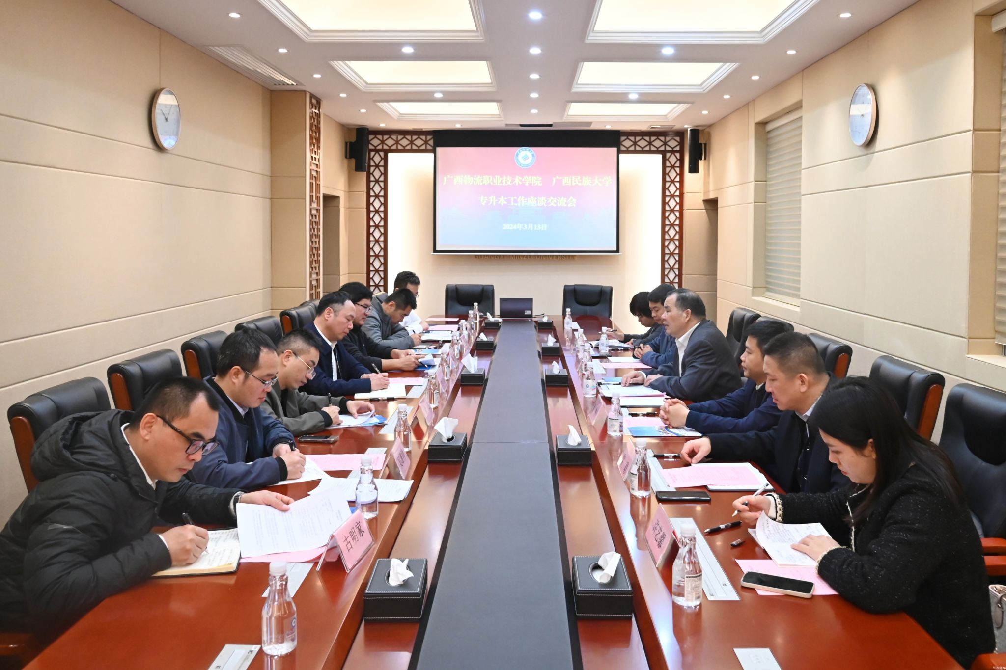 【廣西物流職業技術學院到我校洽談專升本招生工作】3月13日,副校長何立榮與廣西物流職業技術學院院長朱海強一行洽談專升本招生工作,何立榮表示,我校重視對高職高專人才引入,將根據學校專業設置的實際情況,大力支持廣西物流職業技術學院專升本工作。雙方就理工科專業專升本指標、學生就業情況等進行交流并就專升本人才培養方案進行探討。(圖/李玟靜 文/甘葉 李玟靜 吳永霞 初審/馬可靠 編/朱云芬 校/王馨 復審/榮子卿 終審/王文娟)