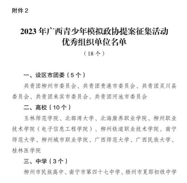 2023年廣西青少年模擬政協提案征集活動優秀組織單位名單