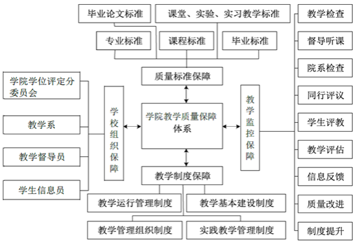 學(xué)院在學(xué)校“四查、四評(píng)、一平臺(tái)”教學(xué)質(zhì)量保障和監(jiān)控體系的基礎(chǔ)上,結(jié)合學(xué)院的特點(diǎn),以不斷提升教學(xué)質(zhì)量為目標(biāo),將目標(biāo)管理和過(guò)程管理有機(jī)結(jié)合,并在教學(xué)過(guò)程中不斷健全和完善,建立了以學(xué)院、教學(xué)系、實(shí)驗(yàn)教學(xué)中心三位一體、老師和院系領(lǐng)導(dǎo)全員參與、全程監(jiān)控的質(zhì)量保障管理體系。