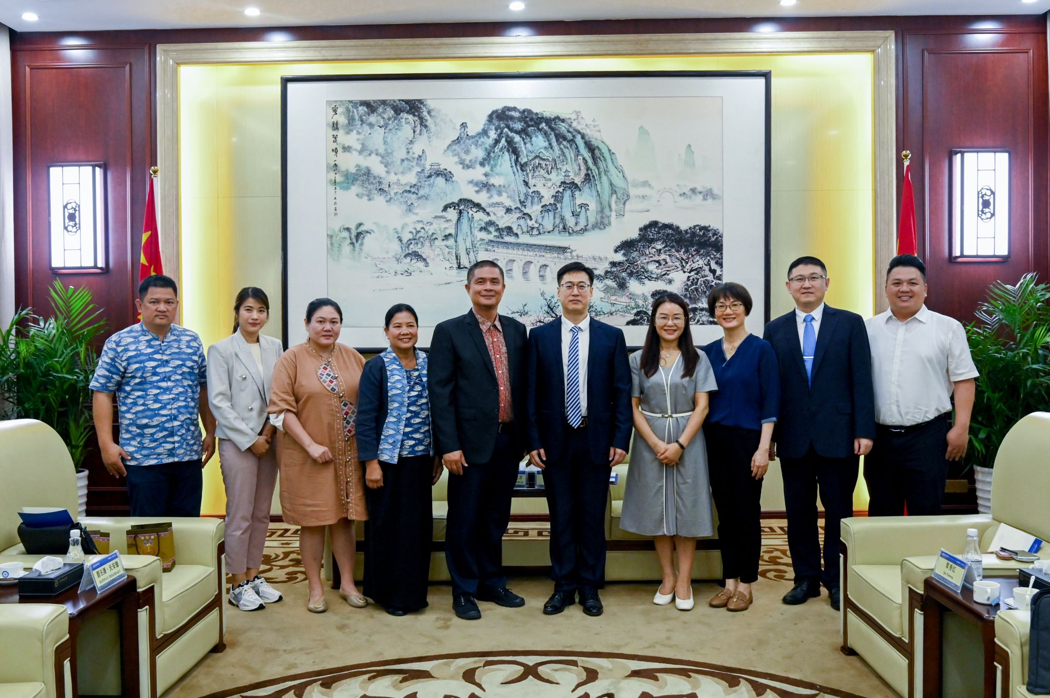 【泰國碧武里皇家大學代表團訪問我校】5月15日,副校長高興宇會見泰國碧武里皇家大學副校長吉士達·鄧查萬一行,雙方就師生交換、創(chuàng)新留學生培養(yǎng)模式、強化科研合作等事宜進行交流。(初審/張玉貞 復審/潘之銘 終審/王文娟)