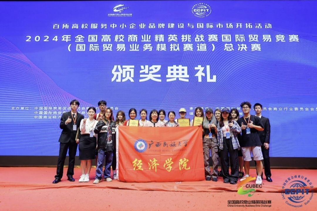 5月23日—27日,2024年全國(guó)高校商業(yè)精英挑戰(zhàn)賽國(guó)際貿(mào)易競(jìng)賽(國(guó)際貿(mào)易業(yè)務(wù)模擬賽道)總決賽在寧波舉行。廣西民族大學(xué)經(jīng)濟(jì)學(xué)院國(guó)際經(jīng)濟(jì)與貿(mào)易專業(yè)共有2支隊(duì)伍參賽,榮獲國(guó)家級(jí)一等獎(jiǎng)2項(xiàng),同時(shí)我校獲“最佳院校組織獎(jiǎng)”。