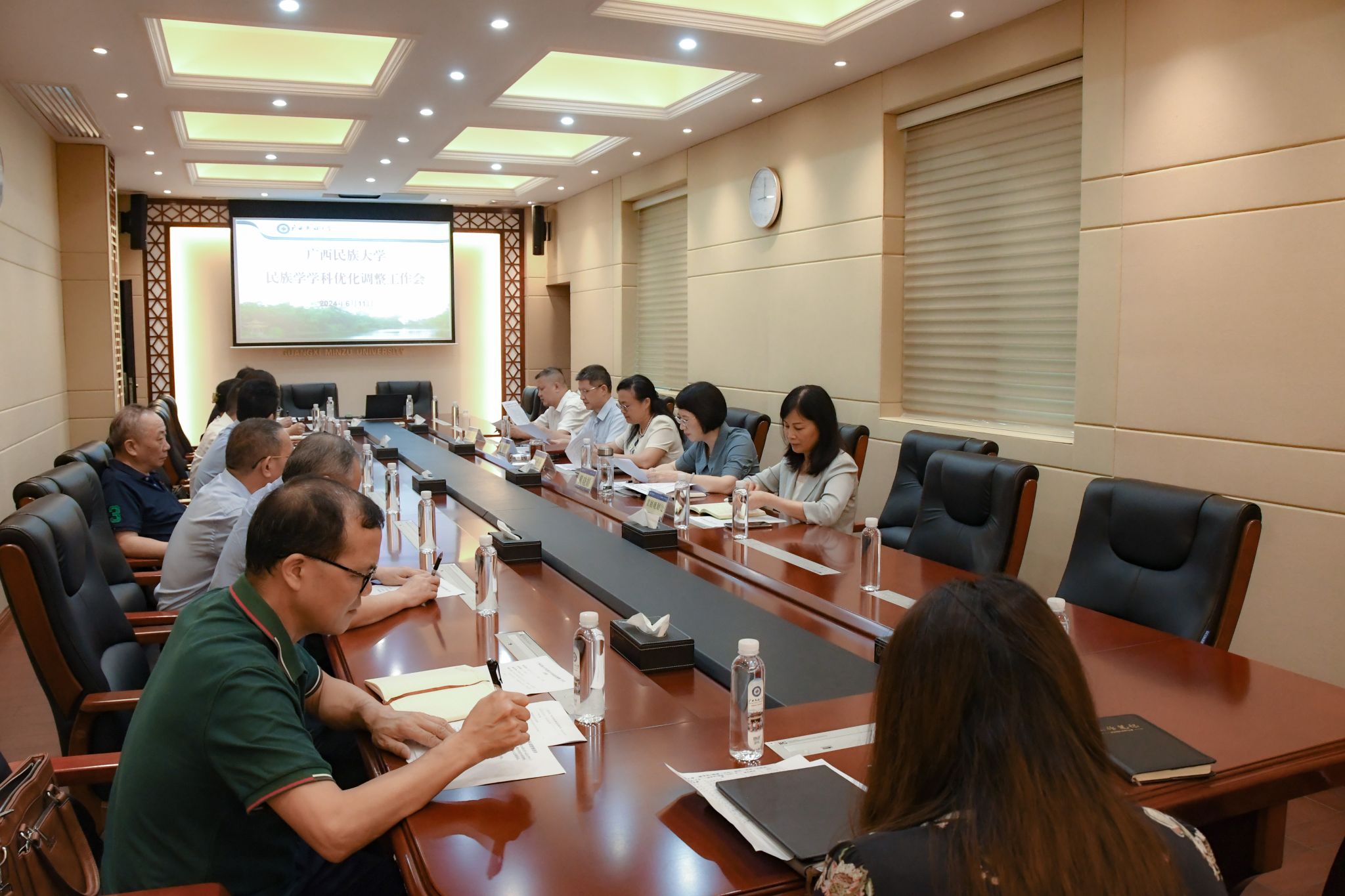 【大學生通訊社報道】6月11日上午,廣西民族大學召開民族學學科建設專題工作會,校長韋仕珍,副校長黃曉娟、呂俊彪出席會議。民族學一級學科和二級學科負責人,發展規劃處、研究生院負責人參加會議。