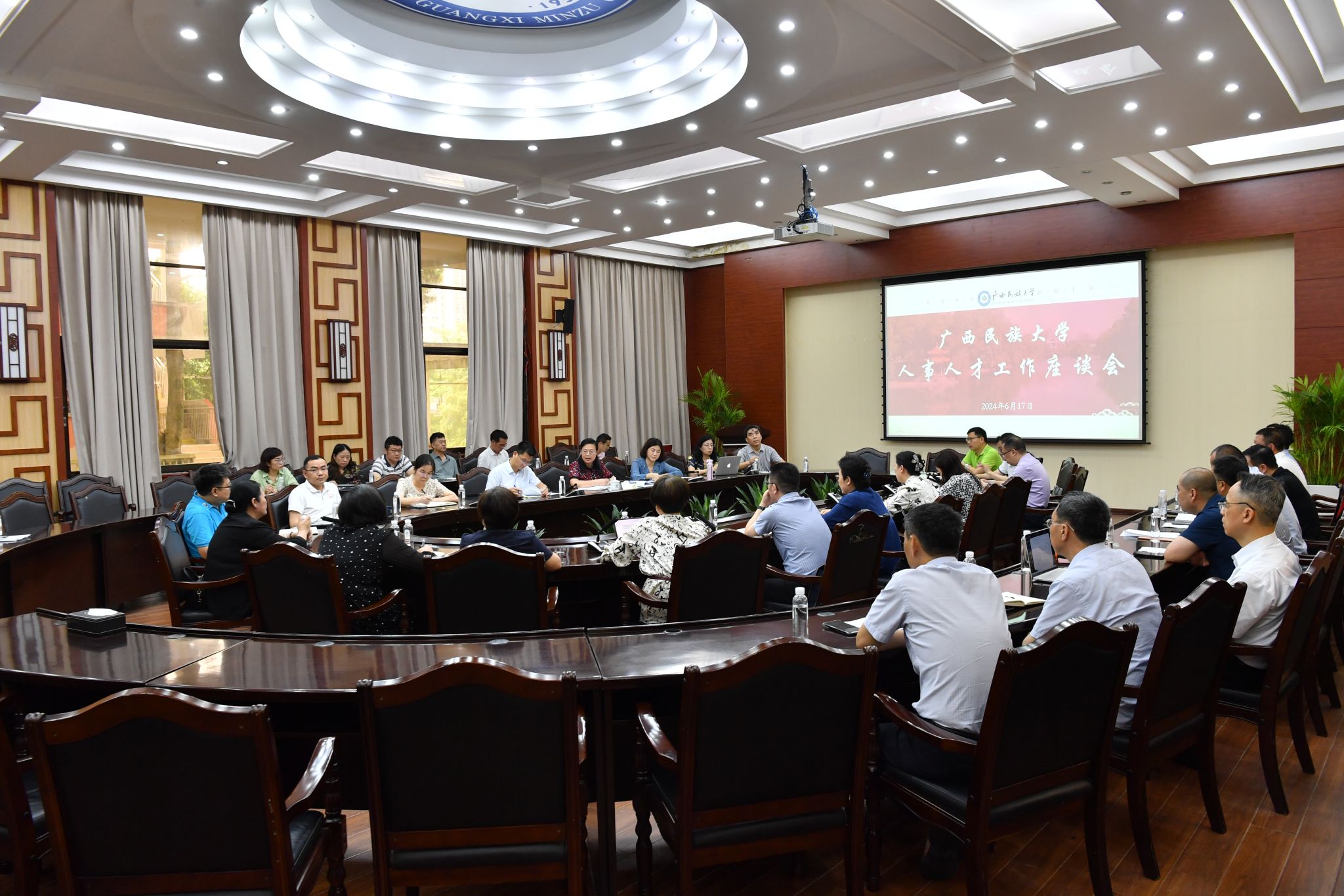 【大學生通訊社報道】6月17日下午,廣西民族大學人事人才工作座談會在國際合作與交流處大會議室召開,校長韋仕珍出席會議,各教學單位、有關職能部門負責人參加會議。