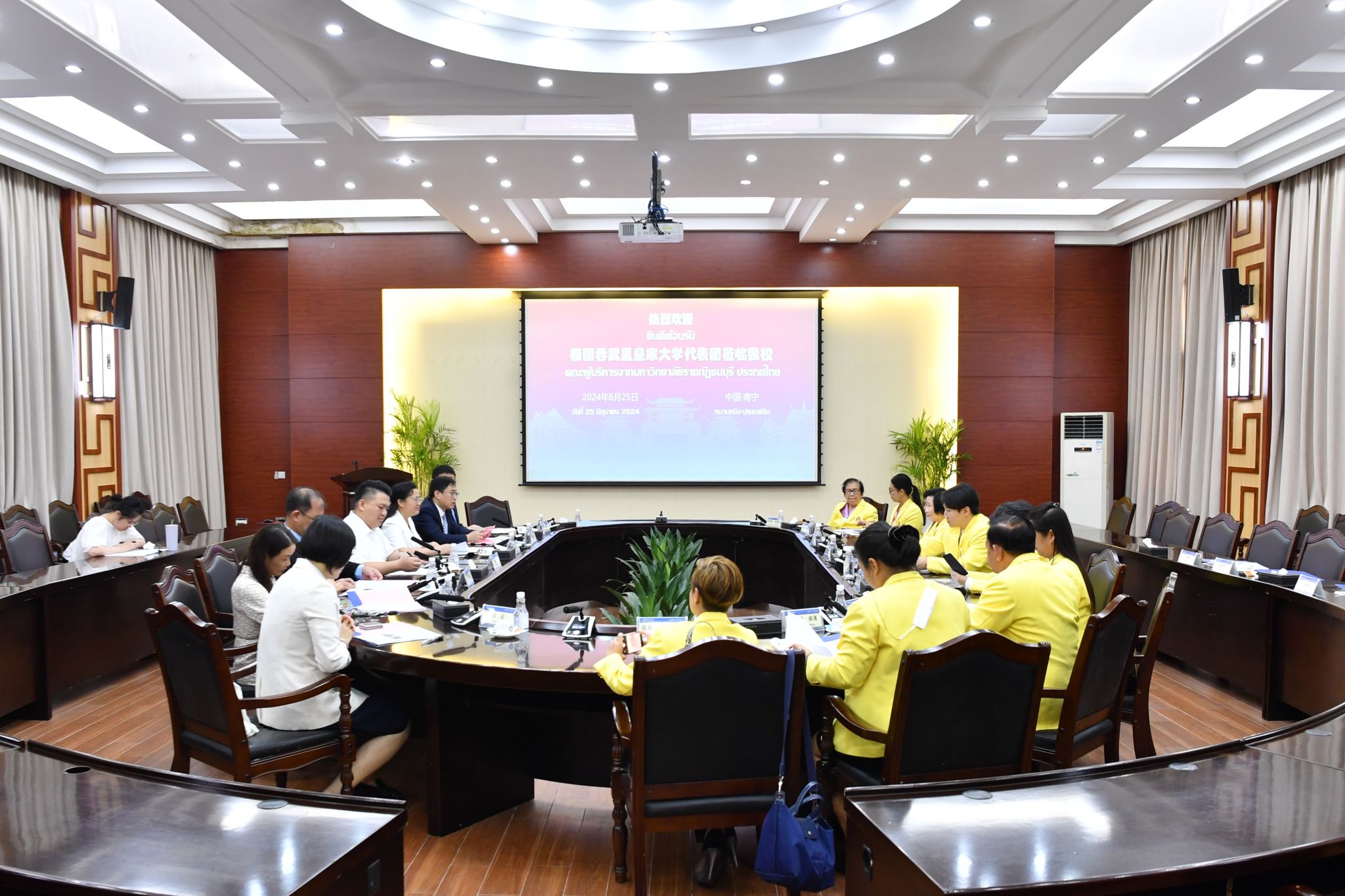 韋仕珍對(duì)代表團(tuán)的到來(lái)表示熱烈歡迎,向代表團(tuán)介紹廣西民族大學(xué)概況和國(guó)際化教育發(fā)展成果。她表示,廣西民族大學(xué)具有一定的國(guó)際認(rèn)可度,泰國(guó)詩(shī)琳通公主曾到校訪問(wèn)。廣西民族大學(xué)與瑪哈沙拉坎大學(xué)共建孔子學(xué)院,與泰國(guó)其他多所高校也建立了合作關(guān)系,希望通過(guò)此次座談會(huì)深化兩校交流與合作。