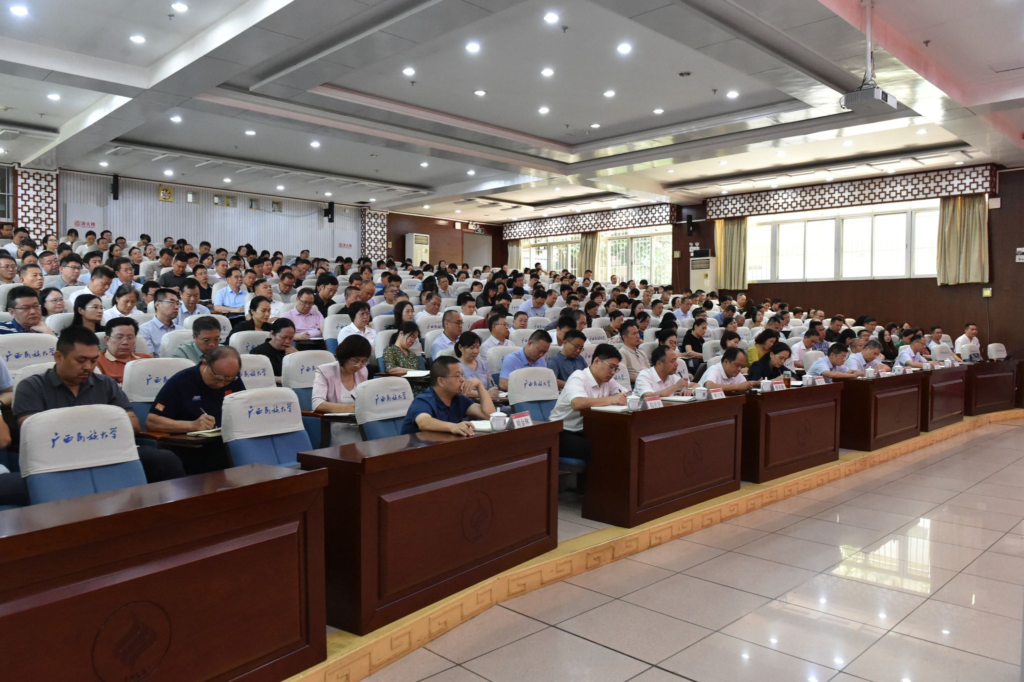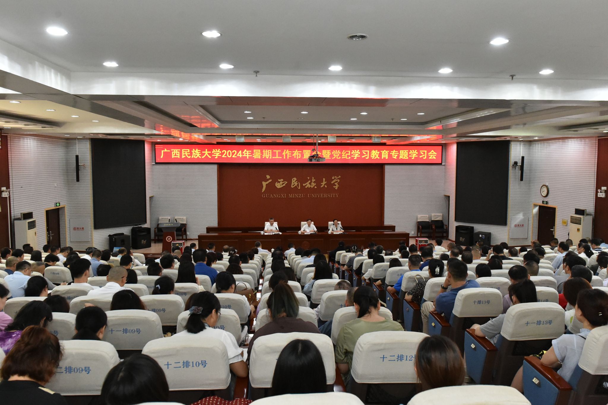 7月12日上午,廣西民族大學(xué)召開2024年暑期工作布置會暨黨紀(jì)學(xué)習(xí)教育專題學(xué)習(xí)會。學(xué)校黨委書記卞成林,黨委副書記、校長韋仕珍出席會議并講話。黨委副書記陳銘彬主持會議。學(xué)校在家校領(lǐng)導(dǎo)及全體正科級以上干部參加會議。