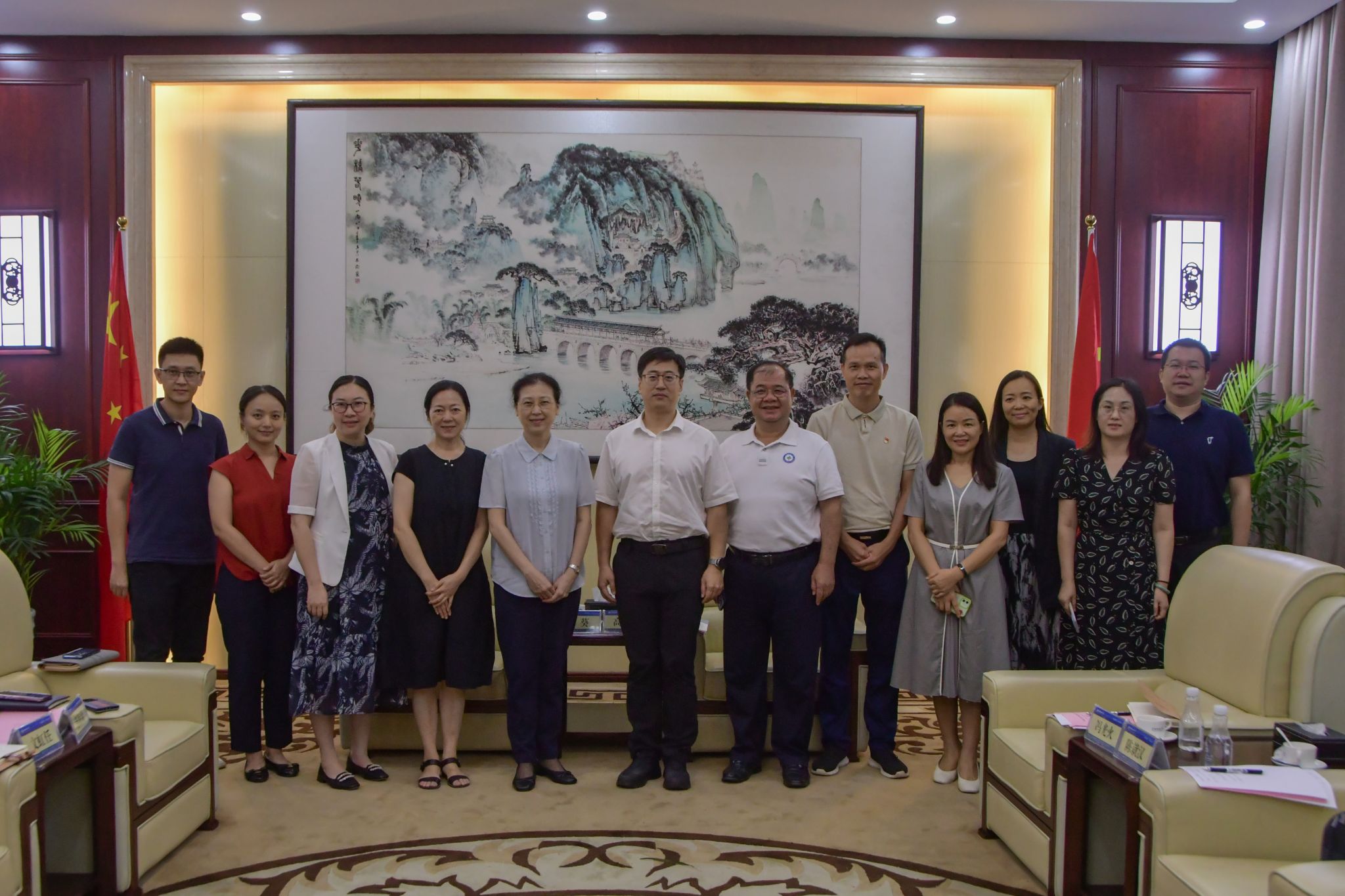 【韶關學院到我校交流】7月10日,副校長姜明國會見韶關學院副校長田廣增一行,雙方就本科教育教學審核評估工作、教師教育激勵機制建立、辦學特色、學科建設、人才培養等進行交流。(初審/謝蓓 復審/榮子卿 終審/王文娟)