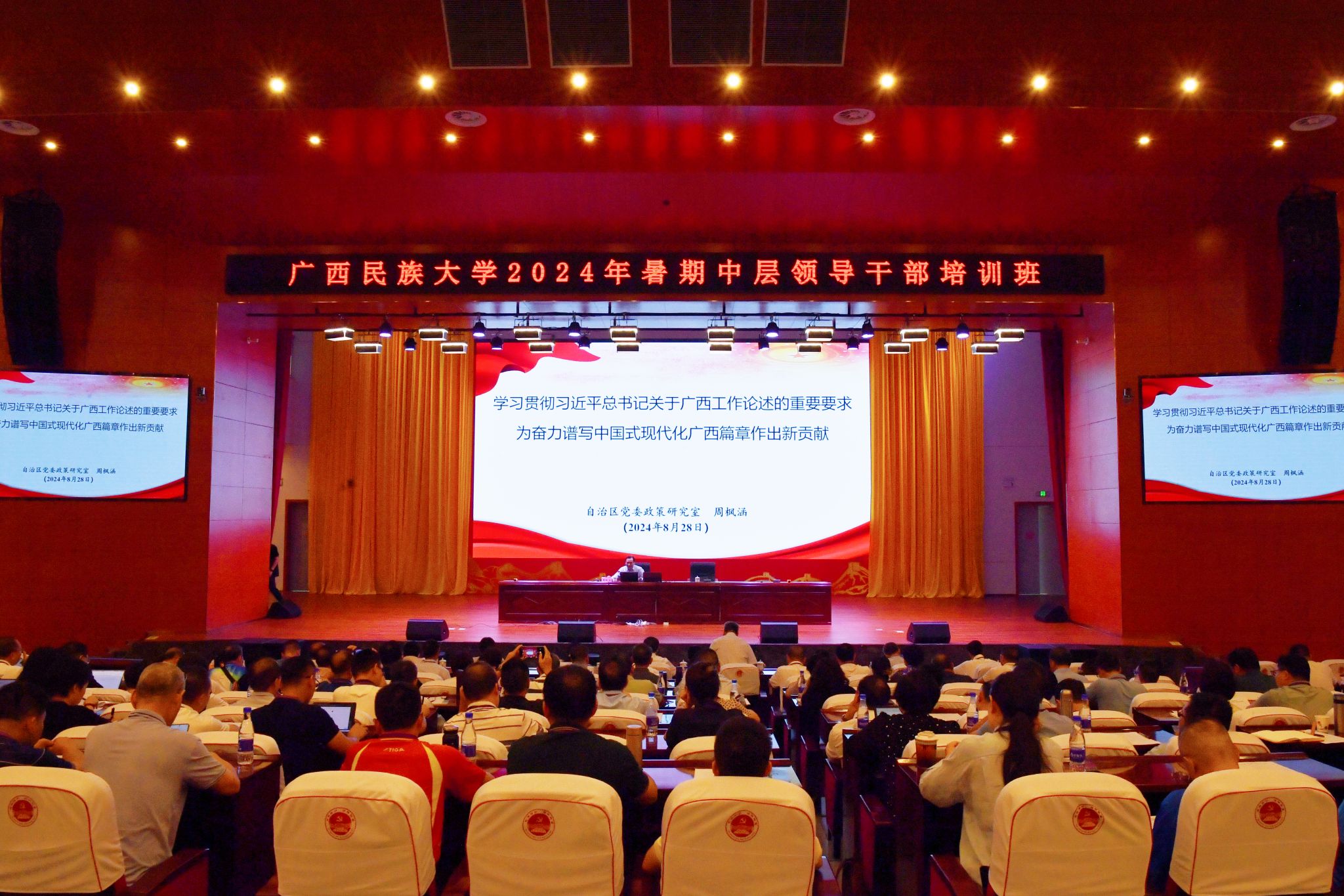 8月28日至31日,廣西民族大學2024年暑期中層領導干部培訓班在賀州市委黨校舉行。學校黨委書記卞成林,校長韋仕珍等全體學校領導及中層領導干部參加。