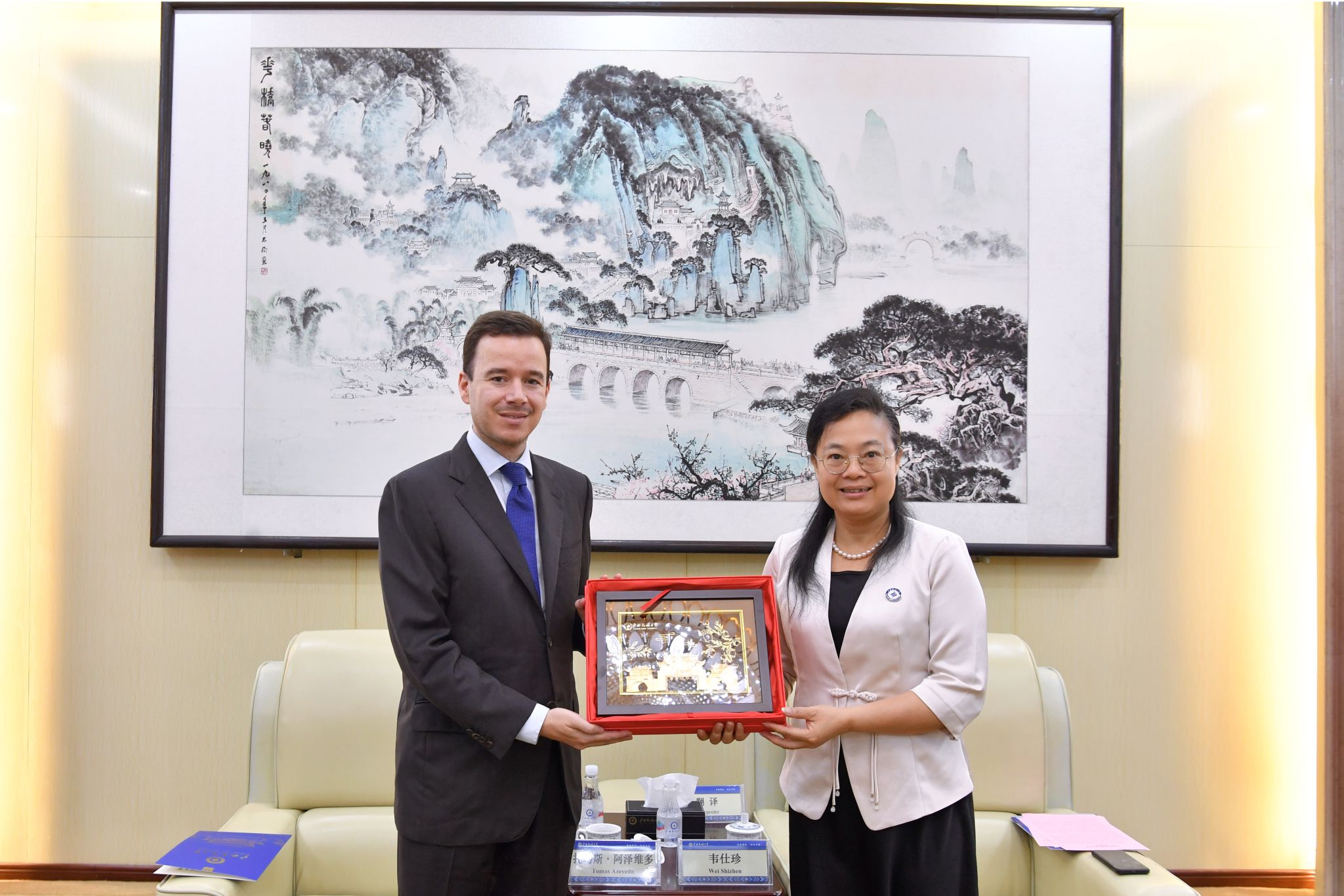 【大學(xué)生通訊社報(bào)道】9月4日上午,校長韋仕珍在國際合作與交流處接待室會見來校訪問的葡萄牙駐廣州總領(lǐng)事托馬斯·阿澤維多。