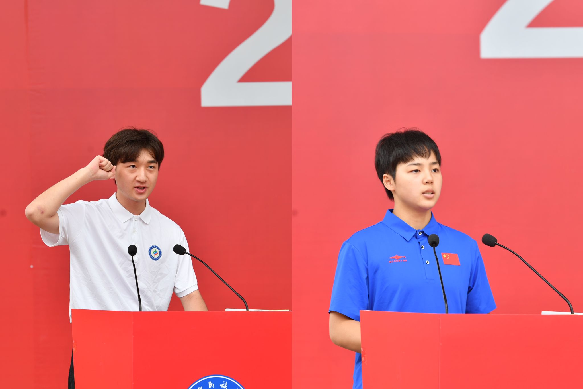 體育與健康科學學院2024級本科生姚華莉在第二十三屆世界蹼泳錦標賽中取得400米器泳項目等多個項目的冠軍,她代表2024級全體新生發言:“我將牢記校長的希望和要求,刻苦學習,弘揚中華體育精神,展現高水平運動員大學生的良好精神風貌,在未來不懈奮斗,爭取更好成績。”