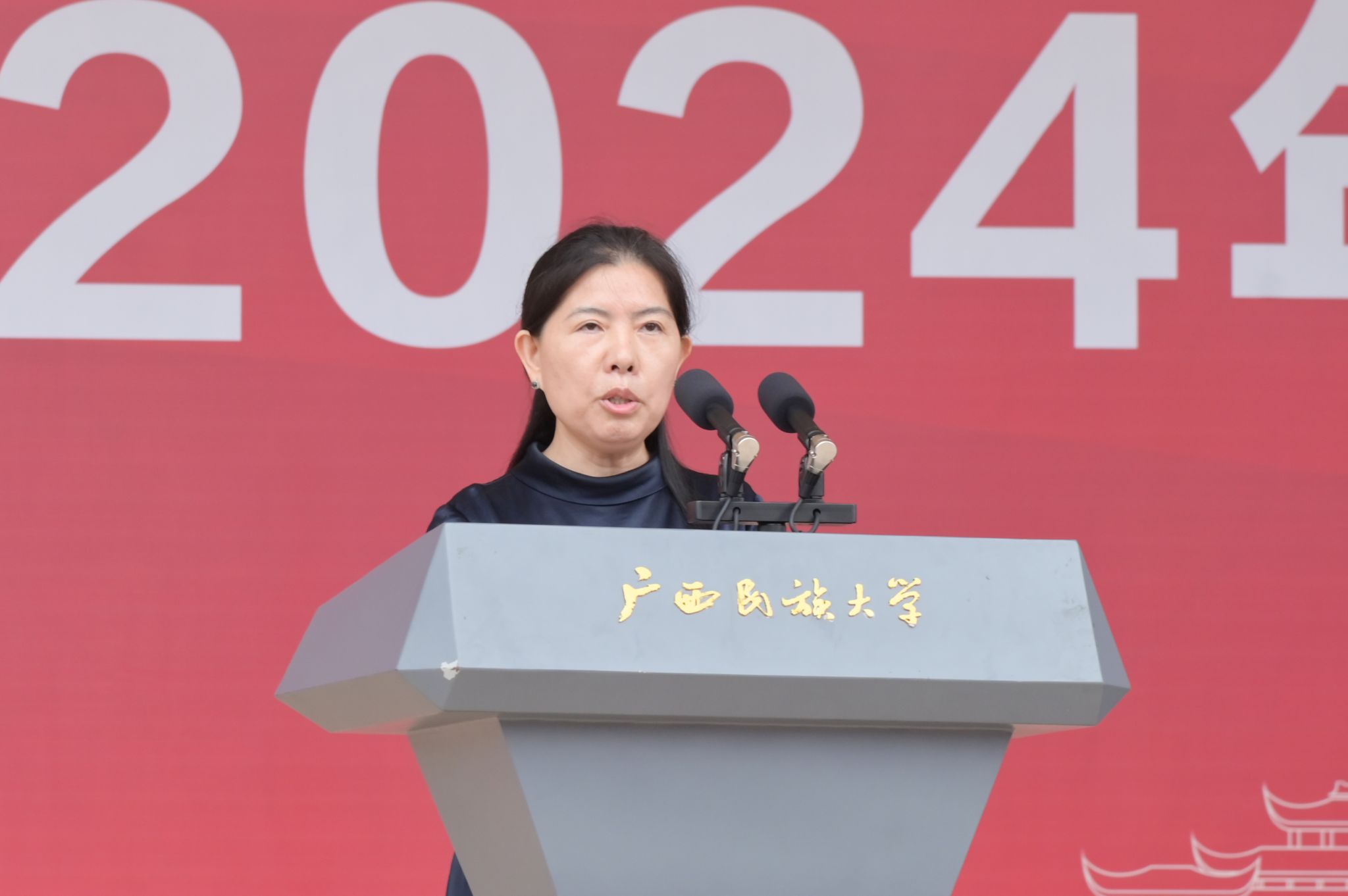 韋仕珍向新同學表示歡迎和祝賀,對全體教師致以節日祝福。她表示,建校以來,學校累計培養近 38 萬名“下得去、留得住、干得好”的專業人才,被譽為“少數民族干部的搖籃”,為維護國家統一和邊疆穩定、促進民族團結進步和經濟社會發展做出了積極貢獻。民大人矢志不渝、初心不改,既體現“服務國之大者,助力民族復興”的家國情懷,又展現“扎根八桂大地,培育國家棟梁”的擔當精神。民大人始終牢記習近平總書記的殷殷囑托,讓青春向下扎根,向上生長,肩負時代賦予的重任,為“以中國式現代化全面推進強國建設、民族復興偉業”而砥礪奮進。