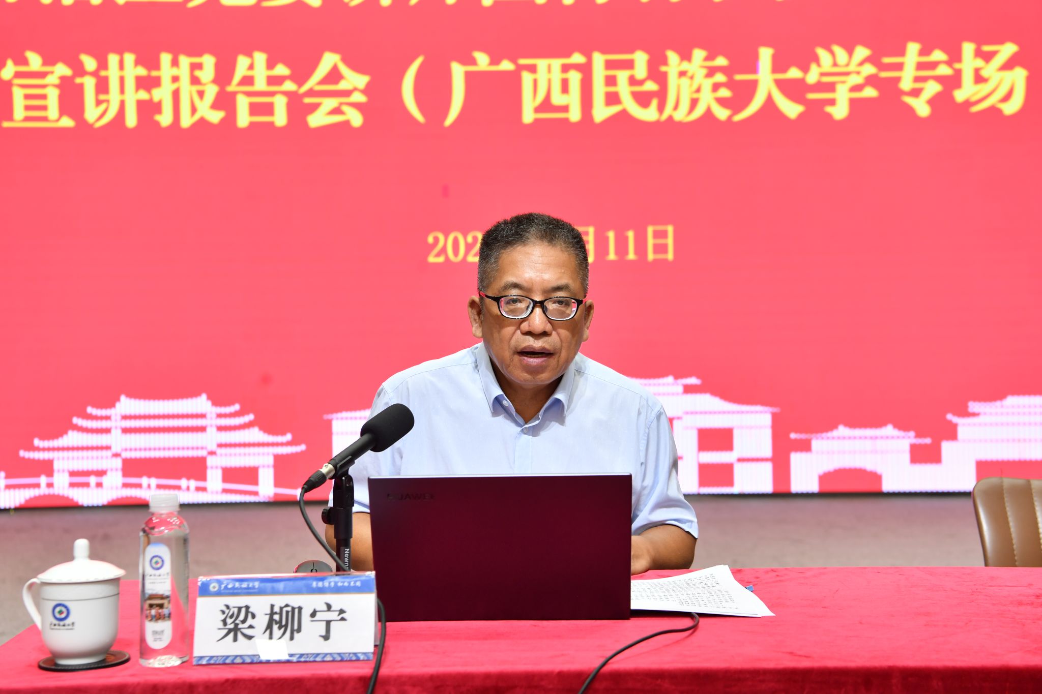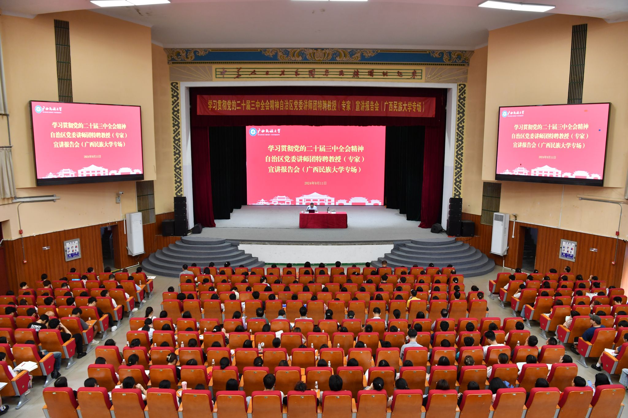 【大學(xué)生通訊社報道】9月11日上午,學(xué)習(xí)貫徹黨的二十屆三中全會精神自治區(qū)黨委講師團特聘教授(專家)宣講報告會在廣西民族大學(xué)相思湖校區(qū)禮堂舉行。自治區(qū)講師團特聘專家、自治區(qū)咨詢專家梁柳寧作宣講報告。自治區(qū)紀(jì)委監(jiān)委駐廣西民族大學(xué)紀(jì)檢監(jiān)察組組長,學(xué)校黨委副書記、紀(jì)委書記韋雪芳主持報告會,各學(xué)院教師、部分學(xué)生參加會議。