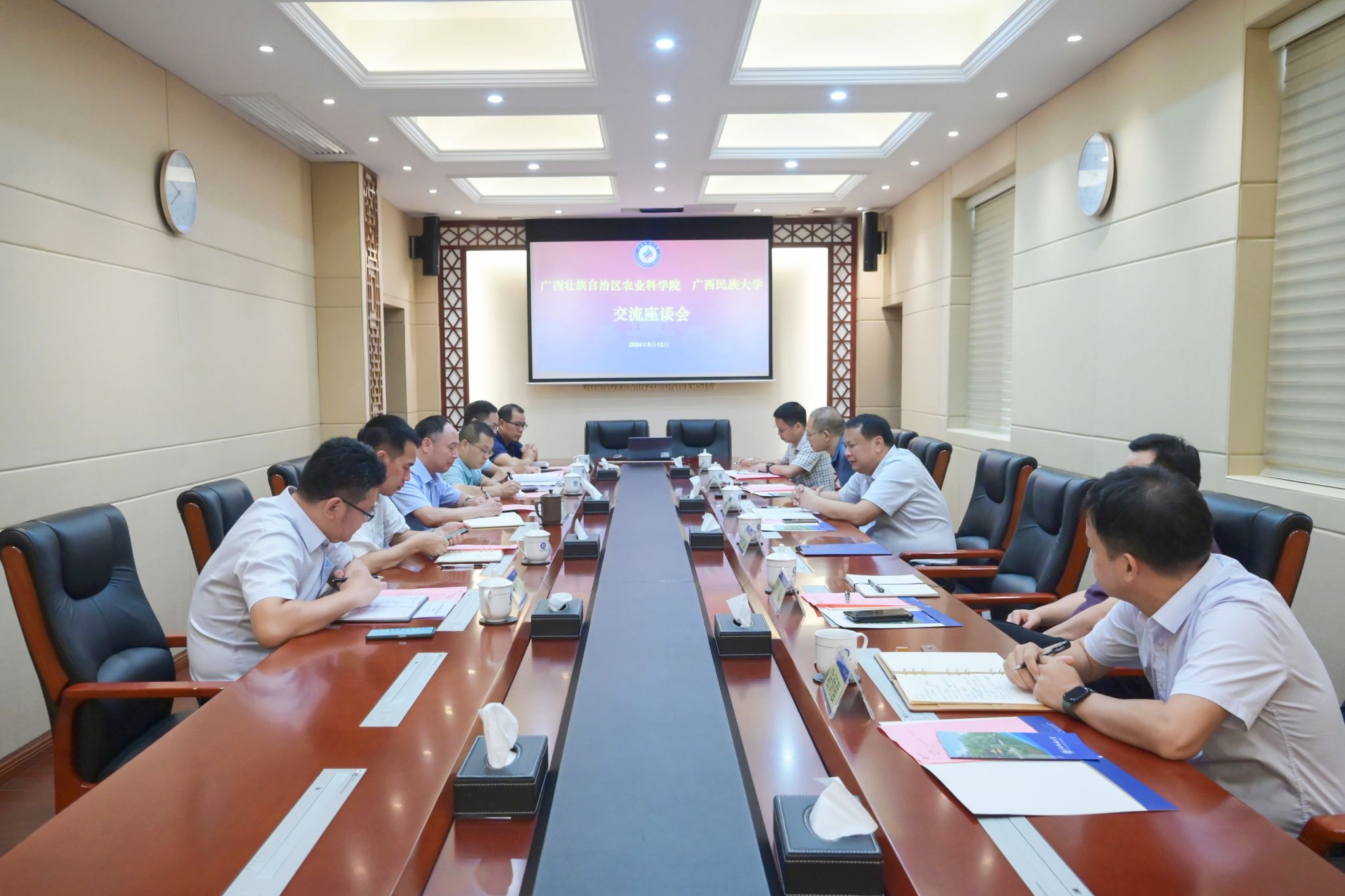 9月13日,學校黨委常委、副校長何立榮與來校調研的廣西農業科學院副院長陸宇明一行座談,雙方就科研合作、科技創新并結合農業科學院建院90周年慶祝活動,就組織開展重大慶典活動展開交流。(初審/覃祖聰 復審/潘之銘 終審/王文娟)