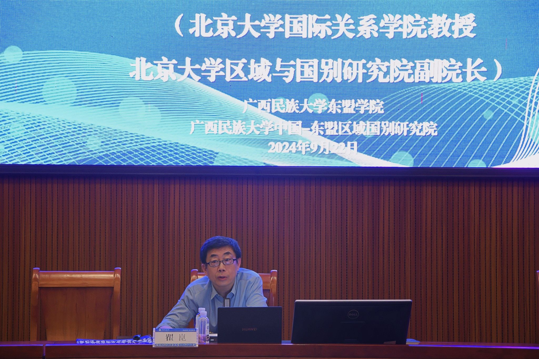 【大學生通訊社報道】9月22日,廣西民族大學“中國-東盟區(qū)域國別高端講壇”第九期報告會在思源湖校區(qū)圖書館學術報告廳舉行。會前,廣西民族大學黨委副書記、校長韋仕珍會見了主講人國務院學位委員會區(qū)域國別學學科評議組召集人、北京大學區(qū)域與國別研究院副院長翟崑教授。東盟學院/中國-東盟區(qū)域國別研究院、東南亞語言文化學院、法學院、經濟學院部分師生參加報告會。