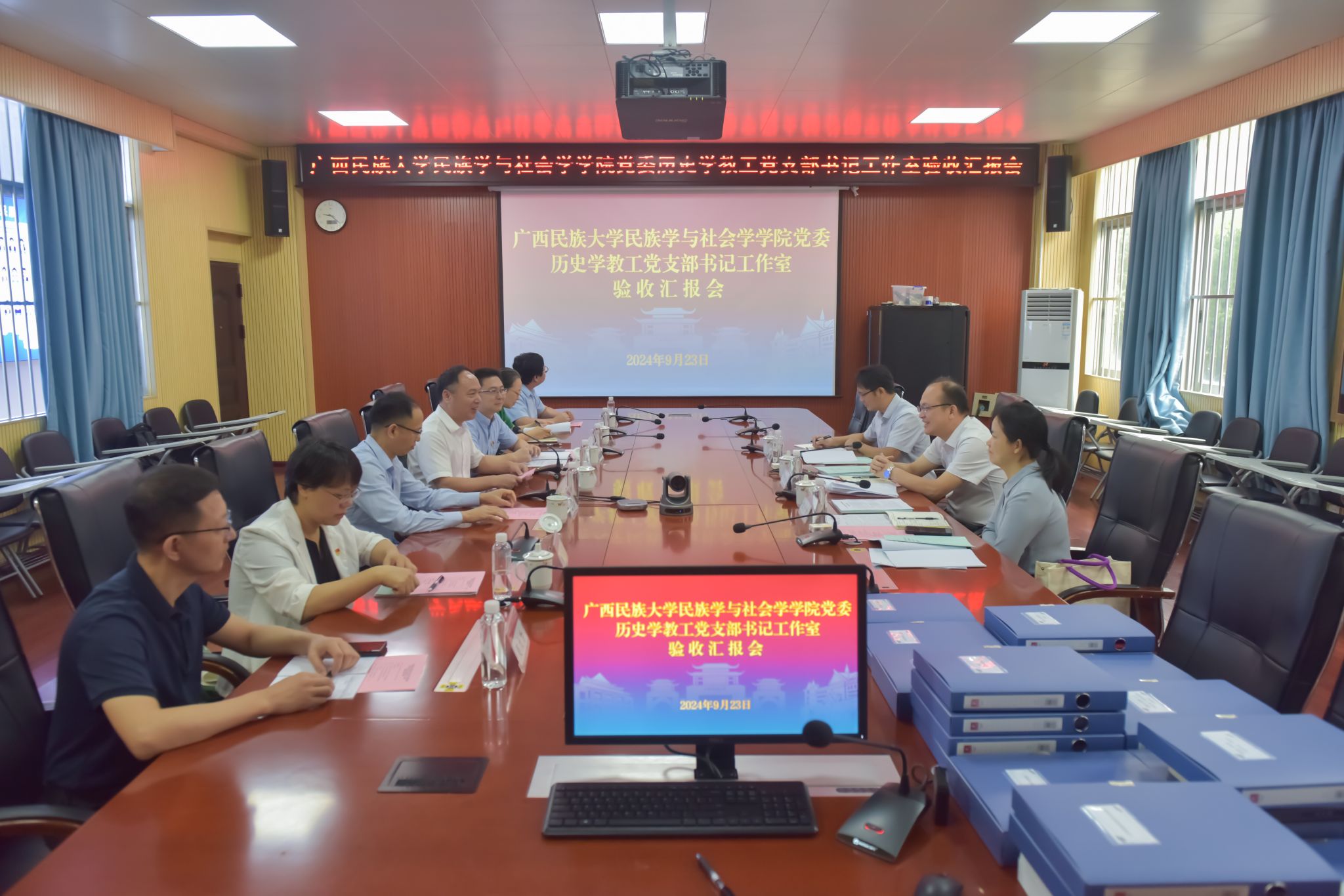 9月23日,學(xué)校黨委常委、副校長(zhǎng)何立榮參加首批新時(shí)代廣西高校“雙帶頭人”教師黨支部書(shū)記工作室驗(yàn)收匯報(bào)會(huì)。驗(yàn)收組對(duì)歷史學(xué)教工黨支部書(shū)記工作室培育創(chuàng)建工作給予肯定,就工作室進(jìn)一步聚焦國(guó)家戰(zhàn)略和廣西經(jīng)濟(jì)社會(huì)發(fā)展需求、持續(xù)加強(qiáng)基層黨組織標(biāo)準(zhǔn)化規(guī)范化建設(shè)等提出建議。(初審/吳大為 復(fù)審/潘之銘 終審/王文娟)