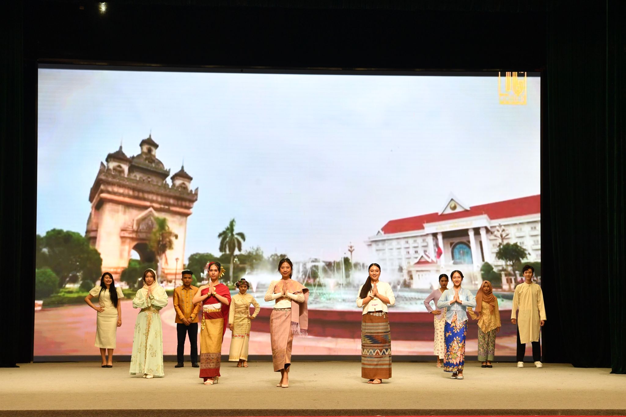 老撾國立大學中文師范專業交換生王龍作為新生代表發言。他表示,在廣西民族大學濃厚的學術氛圍和人文關懷中,他將以個人夢想與世界的需求相結合,努力學習,為文化之間的密切交流貢獻力量。