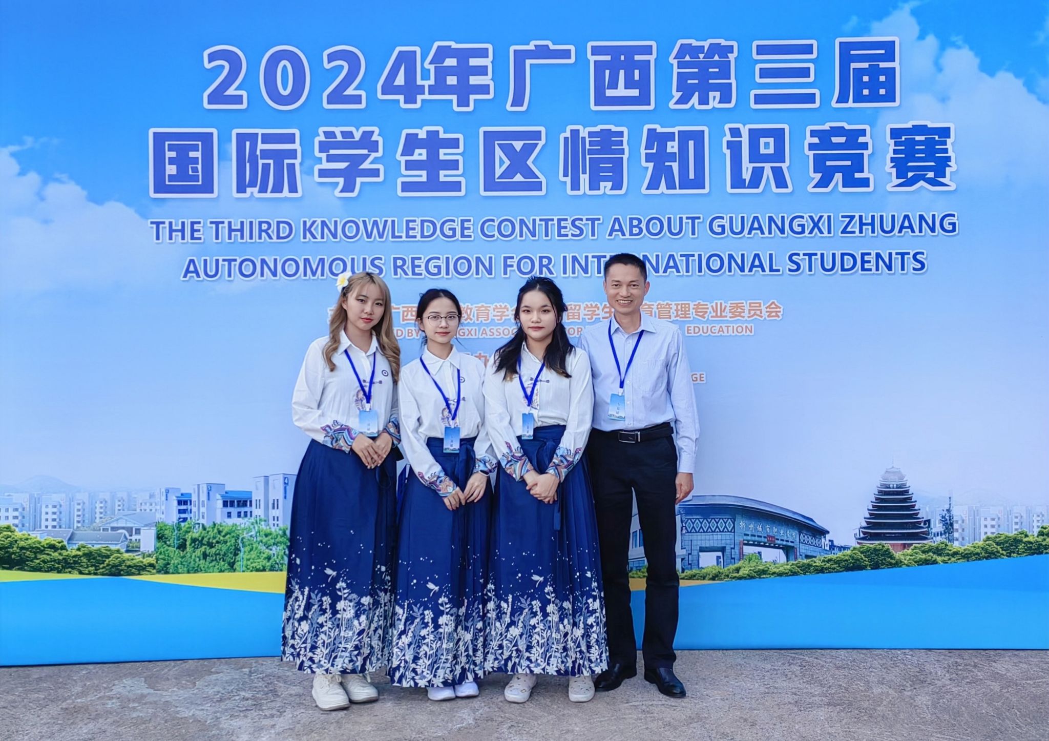 10月24—25日,由廣西高等教育學會外國留學生教育管理專業委員會主辦的2024年廣西第三屆國際學生區情知識競賽在柳州舉行。廣西民族大學留學生潘陳立春、吳麗玲榮獲個人賽一等獎,阮玉英榮獲個人賽二等獎。團體賽中榮獲三等獎。