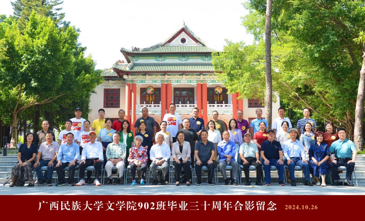 10月26日,我校原中文系漢語言文學專業1990級2班校友舉行畢業30周年紀念活動。廣西民族大學校長韋仕珍出席活動,文學院歷任領導林仕良、朱文雄、李繼兵、黃秉生、陸卓寧等老師與校友參加活動。