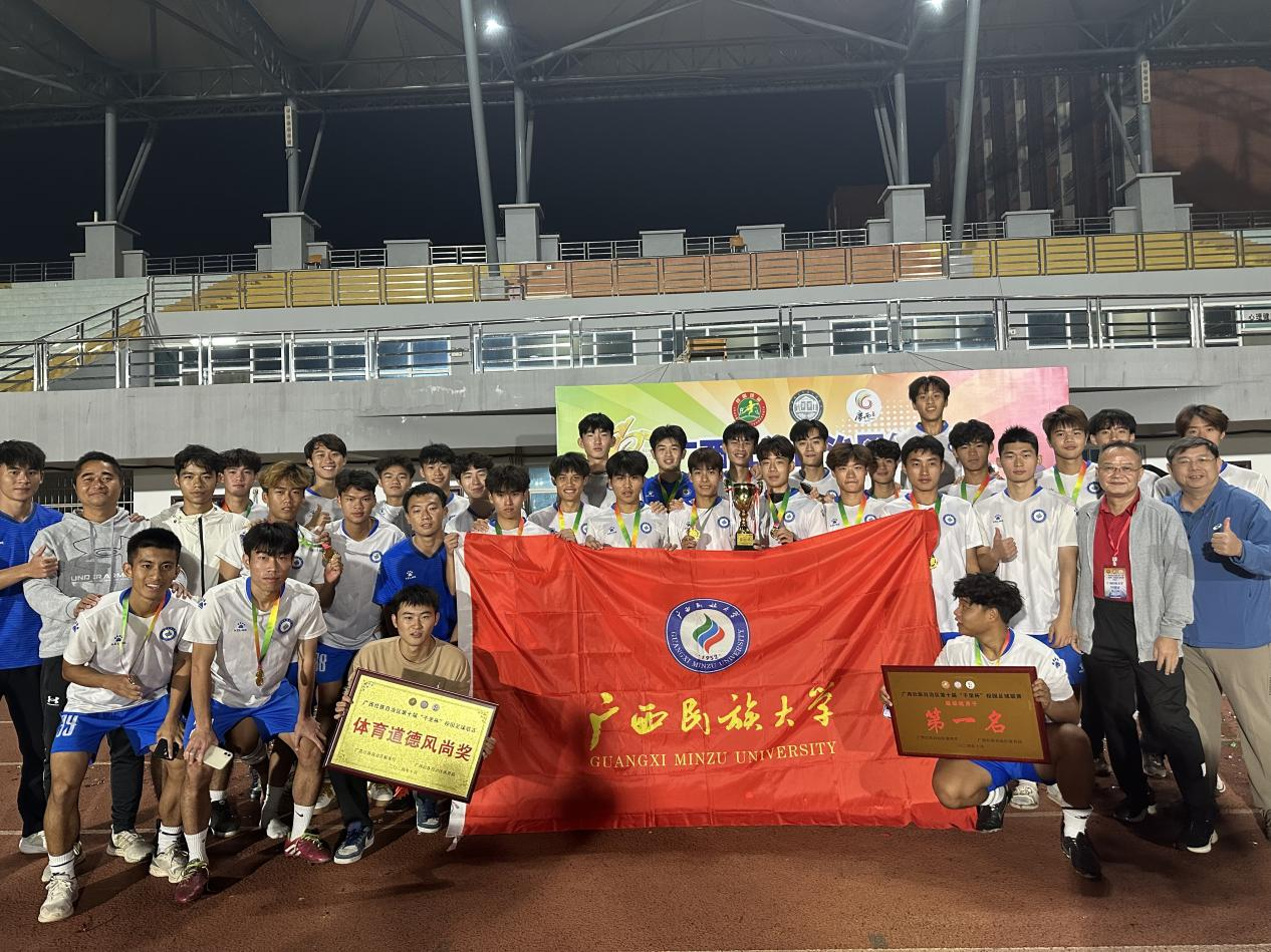由自治區(qū)教育廳、體育局主辦的廣西壯族自治區(qū)第十屆“千里杯”校園足球聯(lián)賽于11月3日落下帷幕,廣西民族大學(xué)勇奪本次“千里杯”(超級(jí)組)男、女子組冠軍。這也是繼2022年第九屆“千里杯”校園足球聯(lián)賽后,我校再一次包攬超級(jí)組男、女子組冠軍。