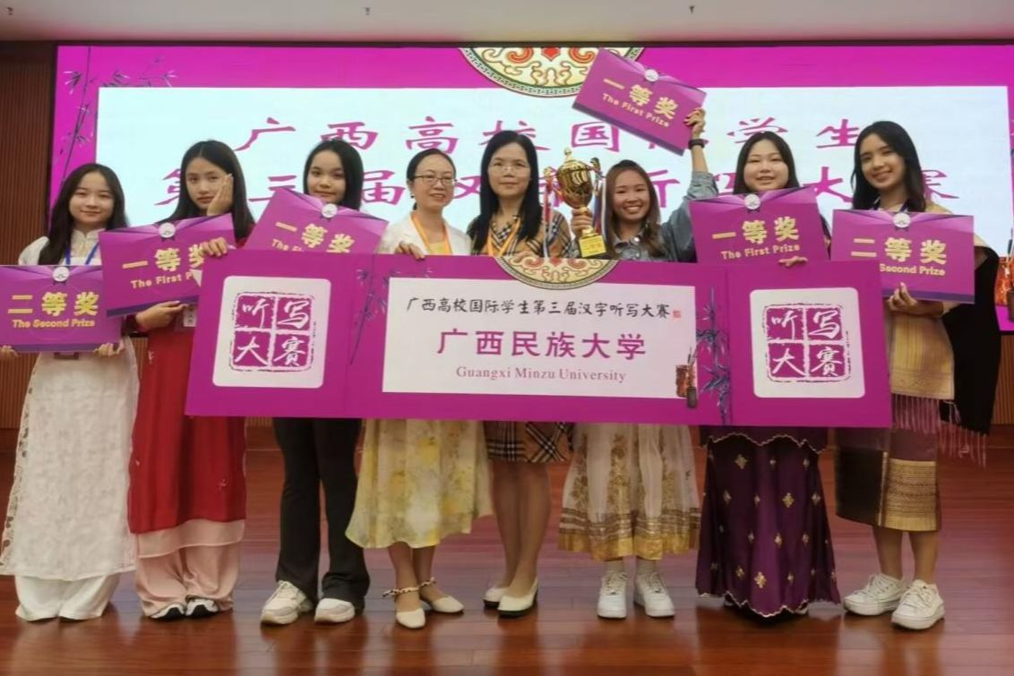 11月14日至16日,由國家留學基金管理委員會、廣西壯族自治區教育廳等主辦的廣西高校國際學生第三屆漢字聽寫大賽在桂林舉行。我校參賽隊伍再創佳績,個人賽分別獲一等獎4項、二等獎3項和優秀獎1項,團體賽獲二等獎。