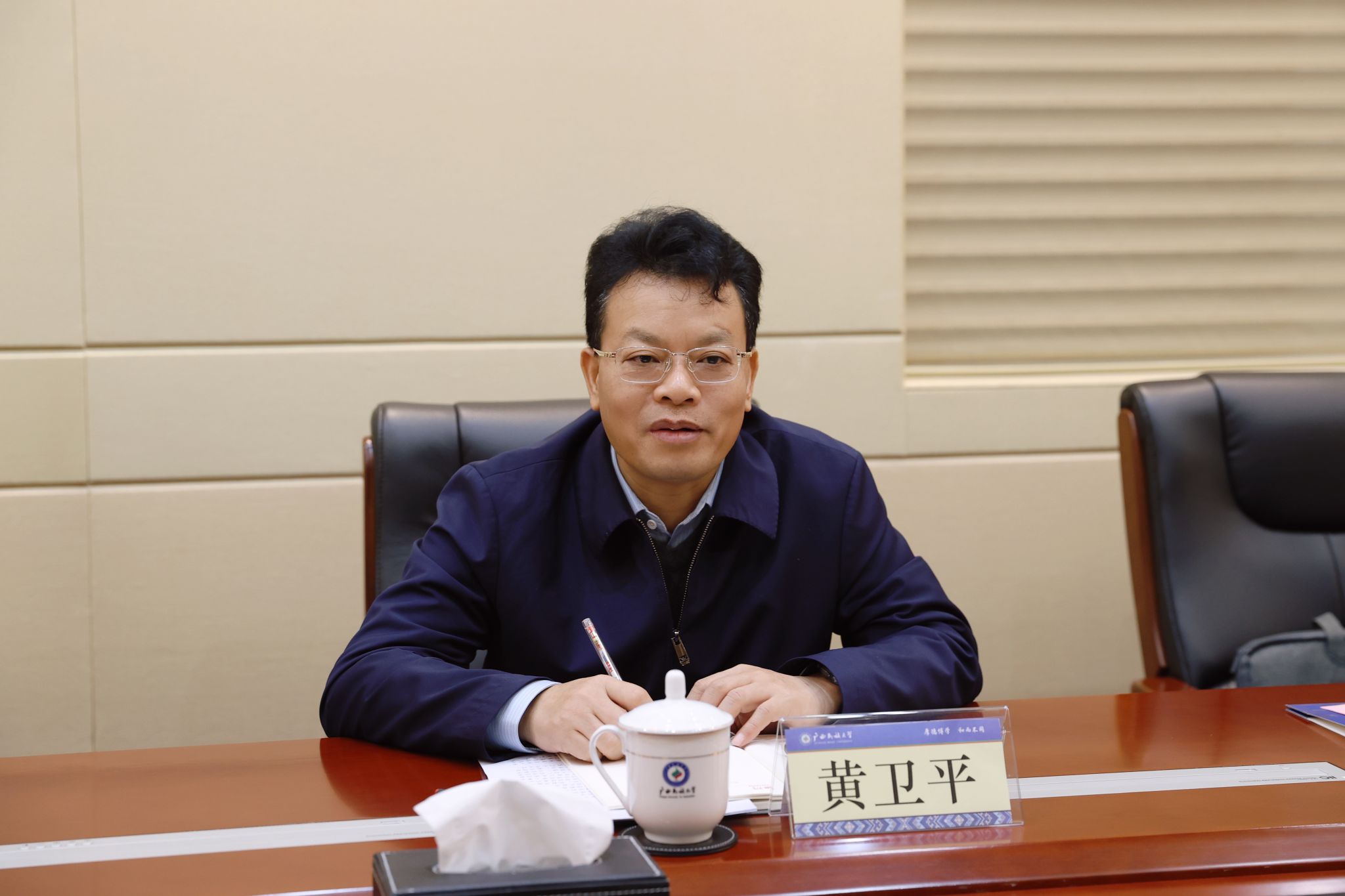 黃衛平感謝廣西民族大學對退役軍人進校園工作的支持,希望雙方在傳承紅色基因、弘揚英烈精神中繼續深化合作,建立資源共享、陣地共建、協同育人的長效合作機制,共同推進退役軍人就業安置、教育管理等各項工作,共同培養堪當民族復興重任的時代新人。