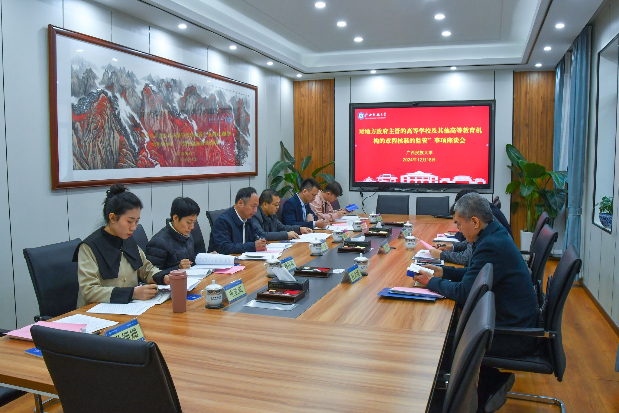 12月18日,學校黨委常委、副校長何立榮會見自治區教育廳政策法規處負責人一行。學校匯報廣西民族大學章程修訂及貫徹落實情況,表示將進一步推進學校章程學習宣傳和貫徹實施,推進制度建設,優化內部治理。(初審/劉金林 復審/潘之銘 終審/王文娟)