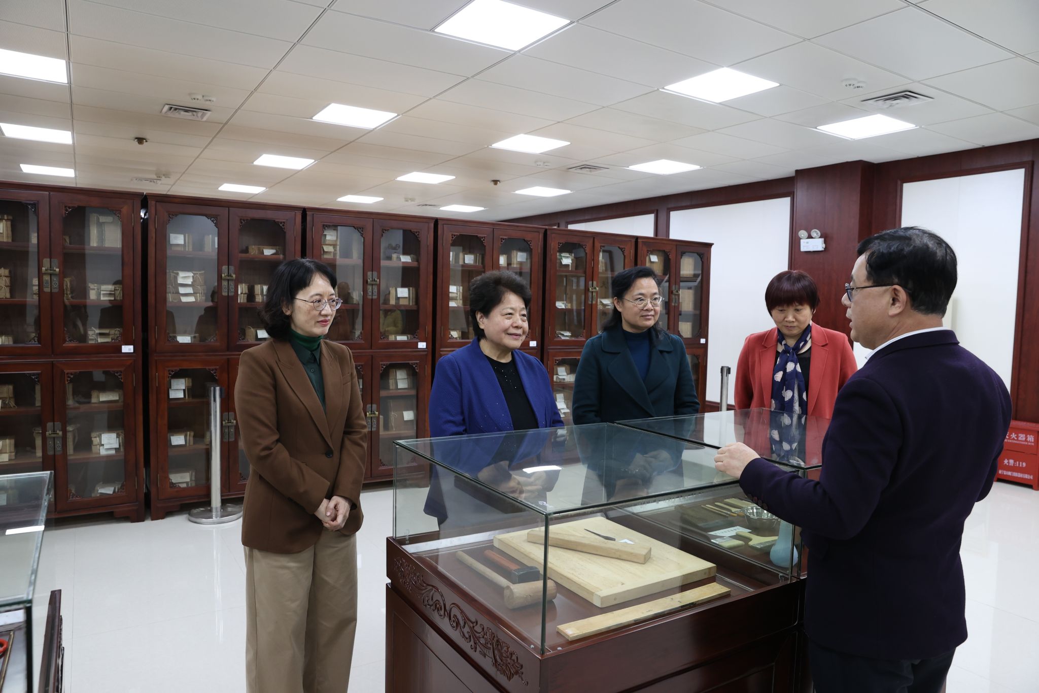 十三屆全國人大民族委員會(huì)副主任委員、原中文系1977級(jí)校友李康參觀圖書館古籍庫