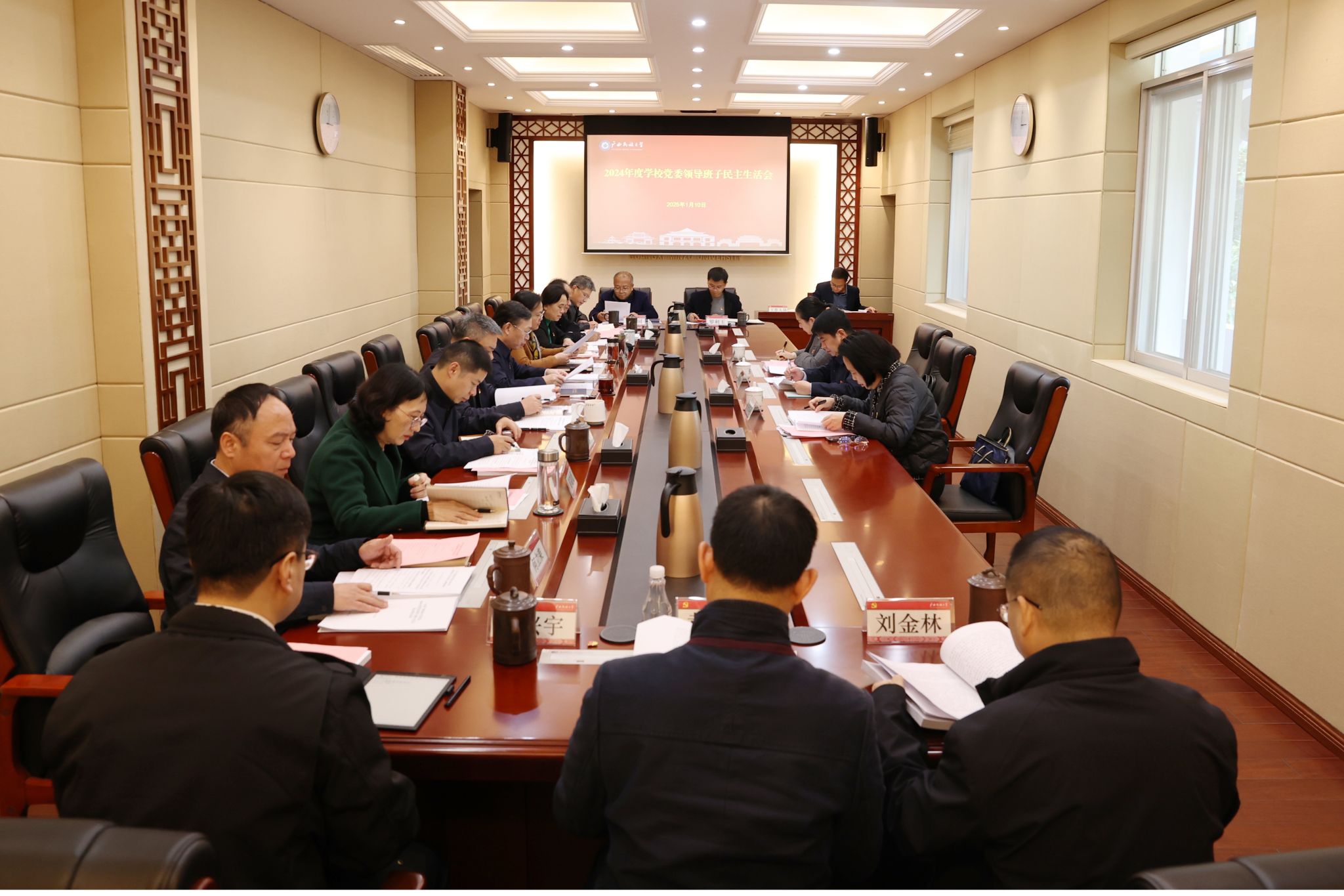 根據自治區黨委的部署要求,1月10日下午,廣西民族大學黨委領導班子召開2024年度民主生活會。會議緊扣“深入學習貫徹習近平新時代中國特色社會主義思想,鞏固深化黨紀學習教育成果,綜合發揮黨的紀律教育約束、保障激勵作用,為進一步全面深化改革、推進中國式現代化提供堅強紀律保證”主題,精心組織學習研討,深入剖析典型案例,聯系思想和工作實際,開展對照檢查,進行黨性分析,嚴肅開展批評與自我批評。學校黨委書記卞成林主持會議并講話。自治區黨委教育工委專職副書記、教育廳黨組成員李曉勇,自治區黨委教育工委組織部部長唐春燕,自治區紀委監委第九監督檢查室副主任趙慶華到會指導。