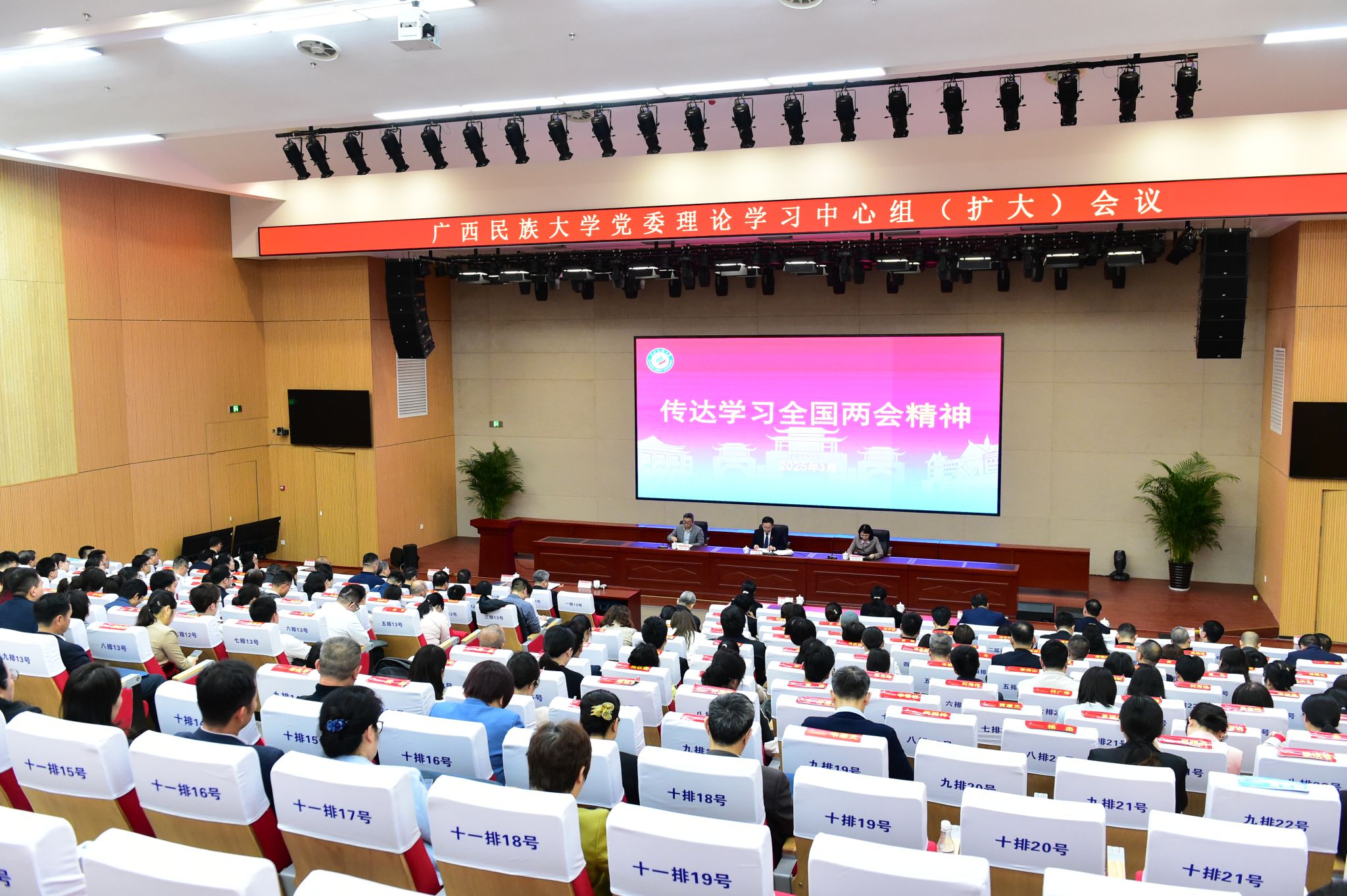 3月15日下午,廣西民族大學(xué)召開黨委理論學(xué)習(xí)中心組(擴大)學(xué)習(xí)會,傳達(dá)學(xué)習(xí)十四屆全國人大三次會議、全國政協(xié)十四屆三次會議精神。校黨委書記卞成林主持會議并傳達(dá)全區(qū)傳達(dá)貫徹全國兩會精神大會精神。全國政協(xié)委員、民進廣西區(qū)委副主委、副校長黃曉娟,全國人大代表、自治區(qū)文聯(lián)主席、廣西民族大學(xué)文學(xué)影視創(chuàng)作中心主任田代琳教授分別傳達(dá)全國兩會精神。