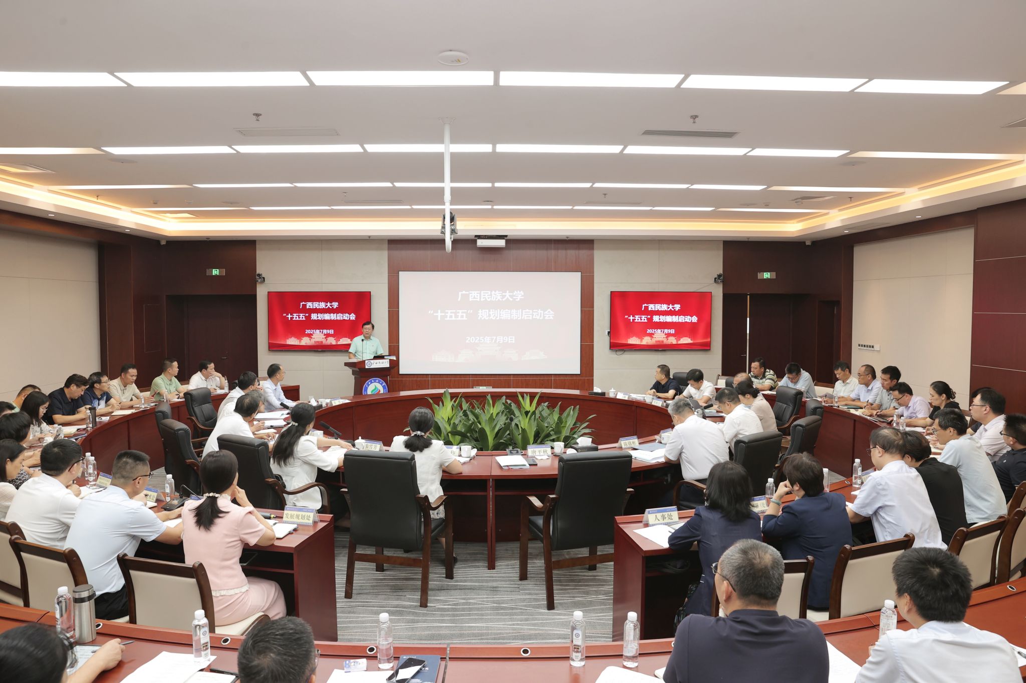 7月9日,廣西民族大學在相思湖校區文化研習基地召開“十五五”規劃編制啟動會,全面總結學校事業發展的成績與經驗,面向“十五五”謀劃學校高質量發展思路,明確發展重點。校黨委書記唐平秋出席會議并講話,校長韋仕珍主持會議,全體在家校領導、中層正職領導干部參加會議。