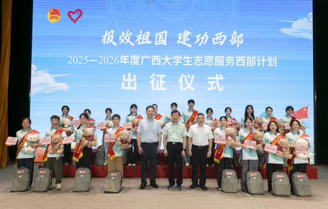 今年廣西民族大學(xué)共有118名優(yōu)秀學(xué)子入選2025年大學(xué)生志愿服務(wù)西部計(jì)劃,將分赴廣西龍州、云南開(kāi)遠(yuǎn)、新疆巴楚、西藏貢嘎等地,開(kāi)展為期一至三年的志愿服務(wù),為西部發(fā)展貢獻(xiàn)民大青年的智慧與力量。(初審:梁罡 復(fù)審:榮子卿 終審:孫壽媚)