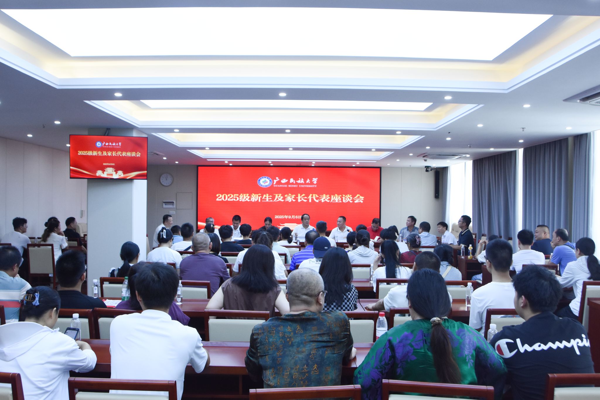 【大學生通訊社報道】奮楫揚帆新征程,金秋筑夢正當時。9月6日上午,校黨委書記唐平秋,校長韋仕珍,校領導陳銘彬、蔡高根、呂俊彪、姜明國等分別帶隊在相思湖校區、思源湖校區、武鳴校區,深入各學院迎新一線,實地檢查新生開學各項工作,參加新生入學綠色通道資助儀式和2025級新生及家長代表座談會。