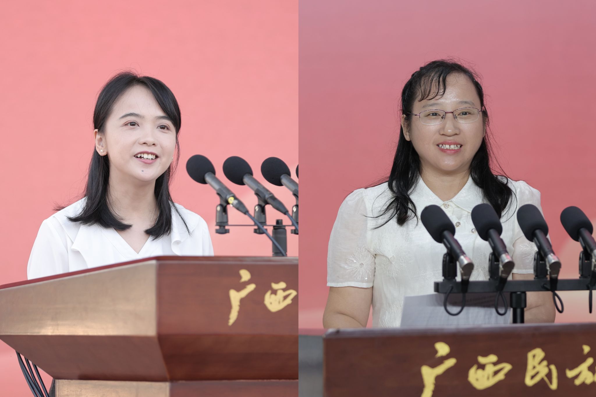 2008級校友、全國三八紅旗手、廣西五一勞動獎章獲得者潘惠云寄語新生在大學期間要勤學深思,既要精進專業、鍛煉體魄,也要培養獨立思考與服務社會的擔當。2003級校友、全國檔案工匠型人才、廣西三八紅旗手獲得者常蘭會深情回顧在母校度過的7年求學時光,感謝母校培養并寄語新生珍惜大學生活。她結合校訓“厚德博學、和而不同”,勉勵學弟學妹傳承“石榴籽精神”,胸懷家國、發奮圖強,為未來就業或深造筑牢基礎。