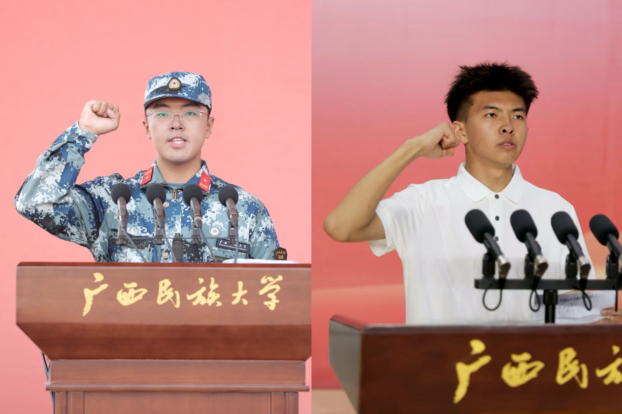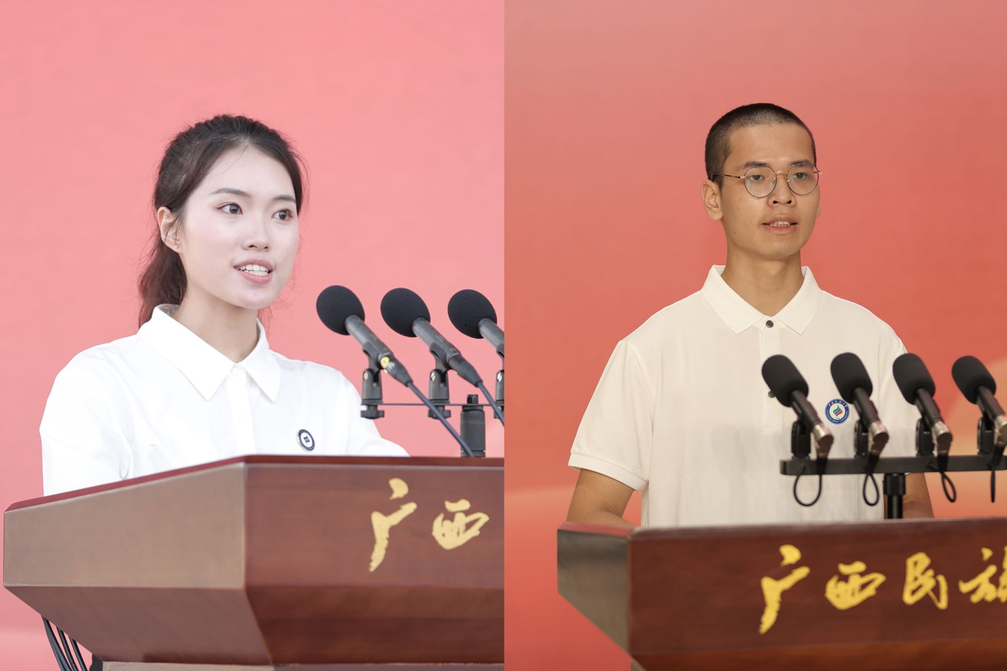 典禮上,新生們佩戴民大校徽徽章,鄭重宣誓:“我是一名光榮的廣西民大人,銘記‘厚德博學,和而不同’的校訓,牢記領袖囑托,勇擔時代重任……為民族團結進步和中華民族偉大復興奮斗終身!”