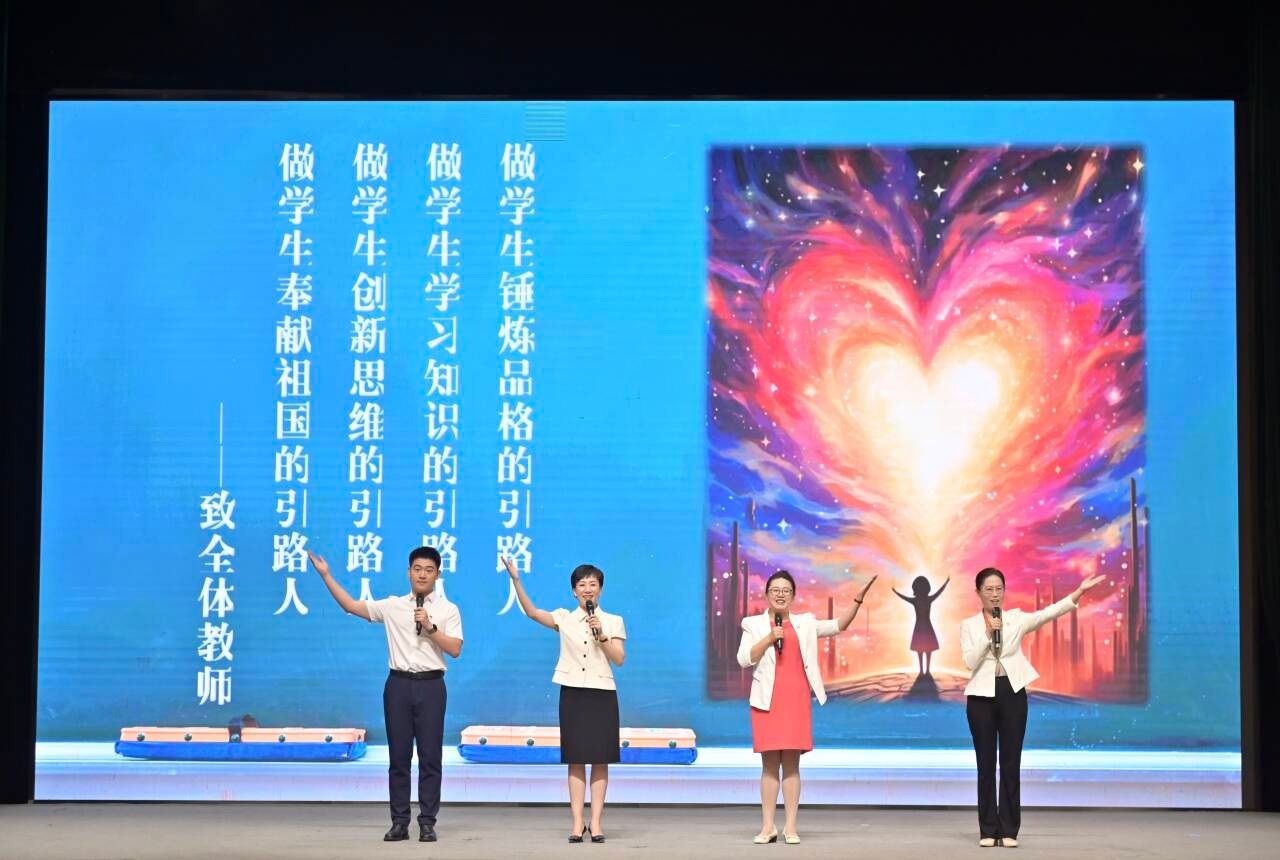會后,校領導與參會人員一起觀看了由學校大學生合唱團帶來的小組唱《老師,我想你》,傳媒學院李琳、尹力、徐輝麗和龍騰四位老師講述的育人故事《師德如水潤相思》,以及藝術學院/民歌學院嚴當當老師和翁鶴老師演繹的原創(chuàng)歌曲《九月的牽掛》。(初審:周娟 復審:李建瑾 終審:孫壽媚)