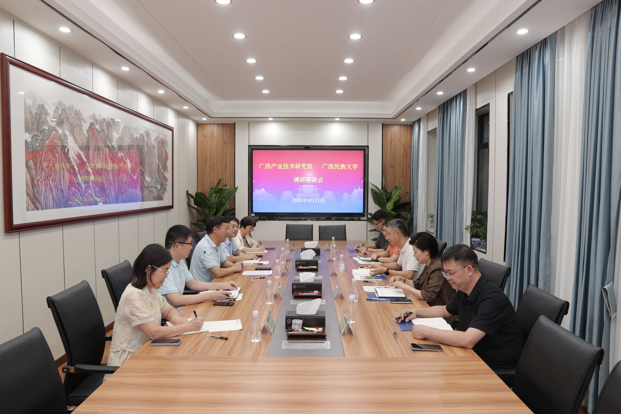 【大學生通訊社報道】9月11日下午,廣西民族大學黨委書記唐平秋會見來校調研交流的廣西產業技術研究院副院長葉波一行。雙方在辦公樓302室召開座談會,副校長高興宇參加。