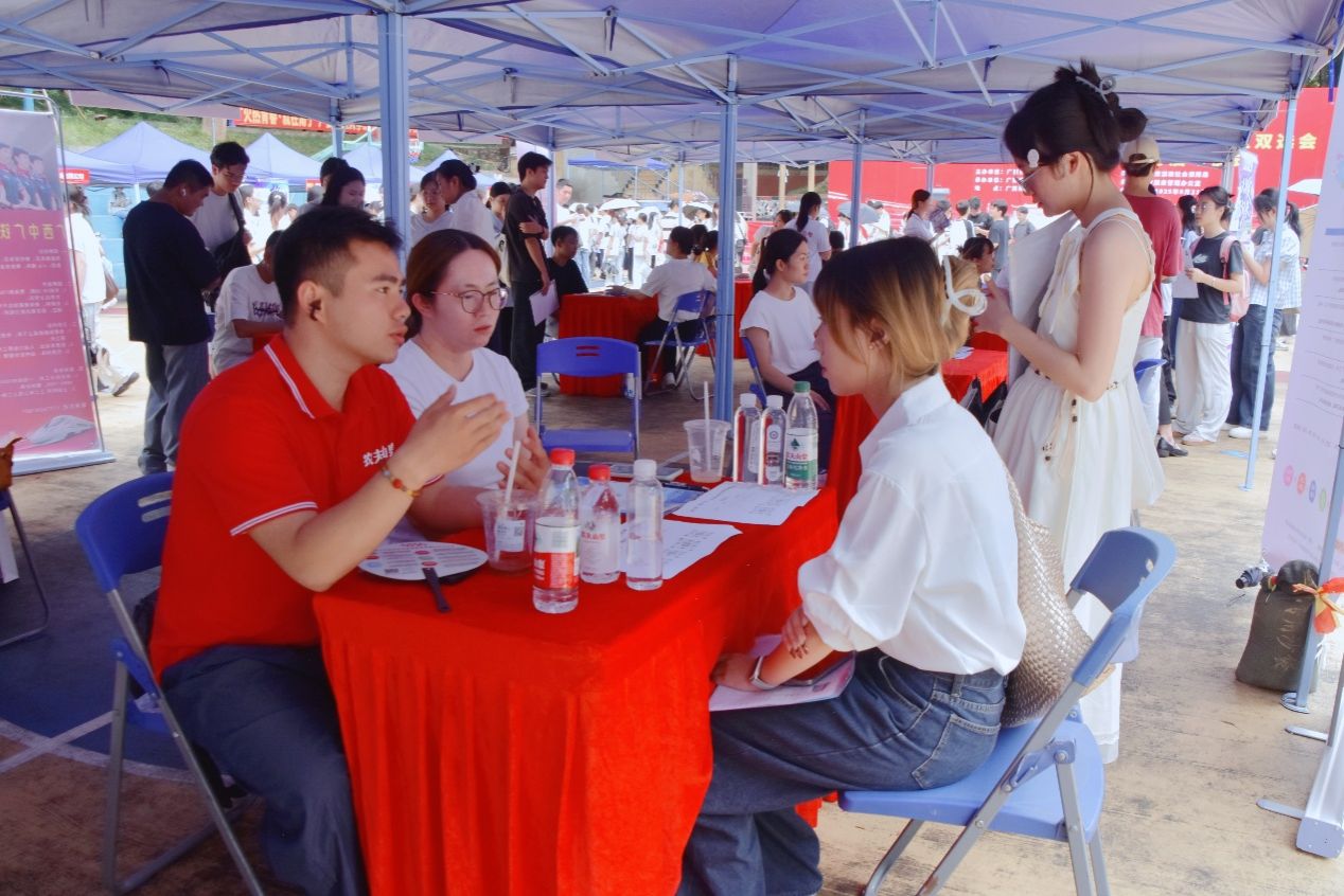 雙選會上人頭攢動,吸引近4000名本校及各大高校學生參與。畢業生積極投遞簡歷,與用人單位就職位需求、發展路徑、薪酬待遇等問題深入交流。