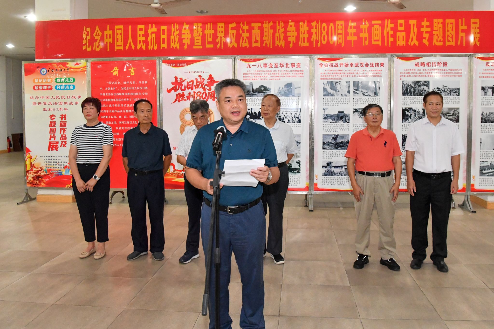 9月24日,陳銘彬在紀念中國人民抗日戰爭暨世界反法西斯戰爭勝利80周年書畫作品及專題圖片展上表示,本次展覽生動詮釋新時期書畫藝術的豐富內涵,希望青年學生藉此機會感悟歷史厚重與精神偉力,把對先烈的緬懷與敬仰轉化為推動學校高質量發展的強大動力。(初審/ 盧莉珠 圖文/劉興尚 編/李楊潔 復審/李建瑾 終審/孫壽媚)