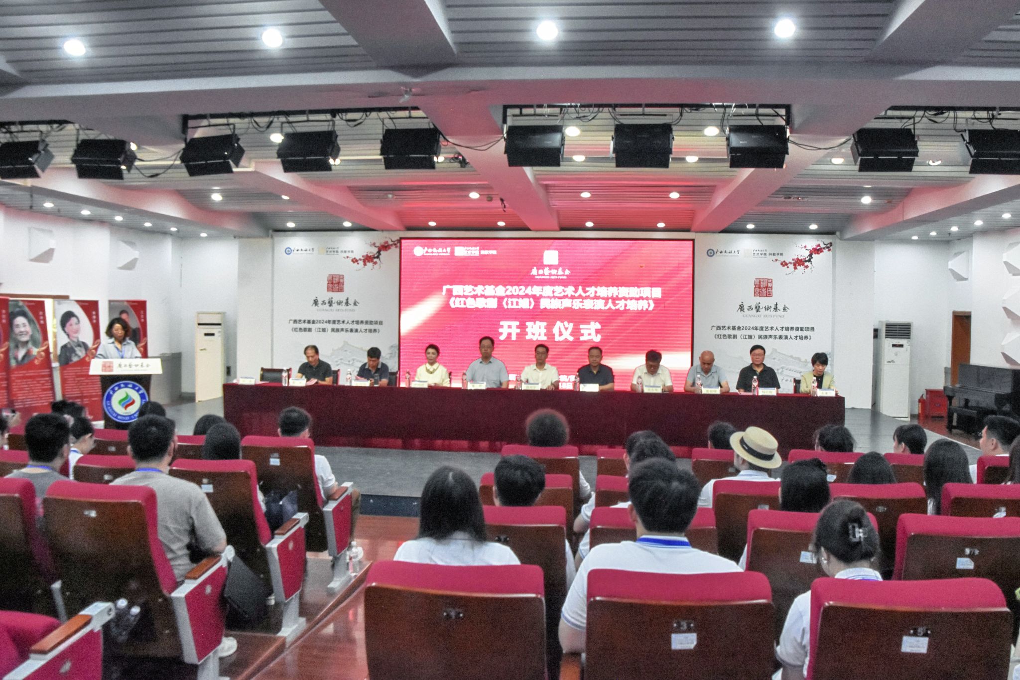 【大學(xué)生通訊社報(bào)道】9月18日下午,廣西藝術(shù)基金2024年度藝術(shù)人才培養(yǎng)資助項(xiàng)目“紅色歌劇《江姐》民族聲樂表演人才培養(yǎng)”開班儀式在廣西民族大學(xué)舉行。廣西民族大學(xué)黨委常委、副校長(zhǎng)高興宇,廣西藝術(shù)創(chuàng)作中心主任傅滔,廣西藝術(shù)基金中期監(jiān)督專家朱創(chuàng)偉、黃朝瑞、蔡央,著名詞作家、一級(jí)編劇楊啟舫出席開班儀式。