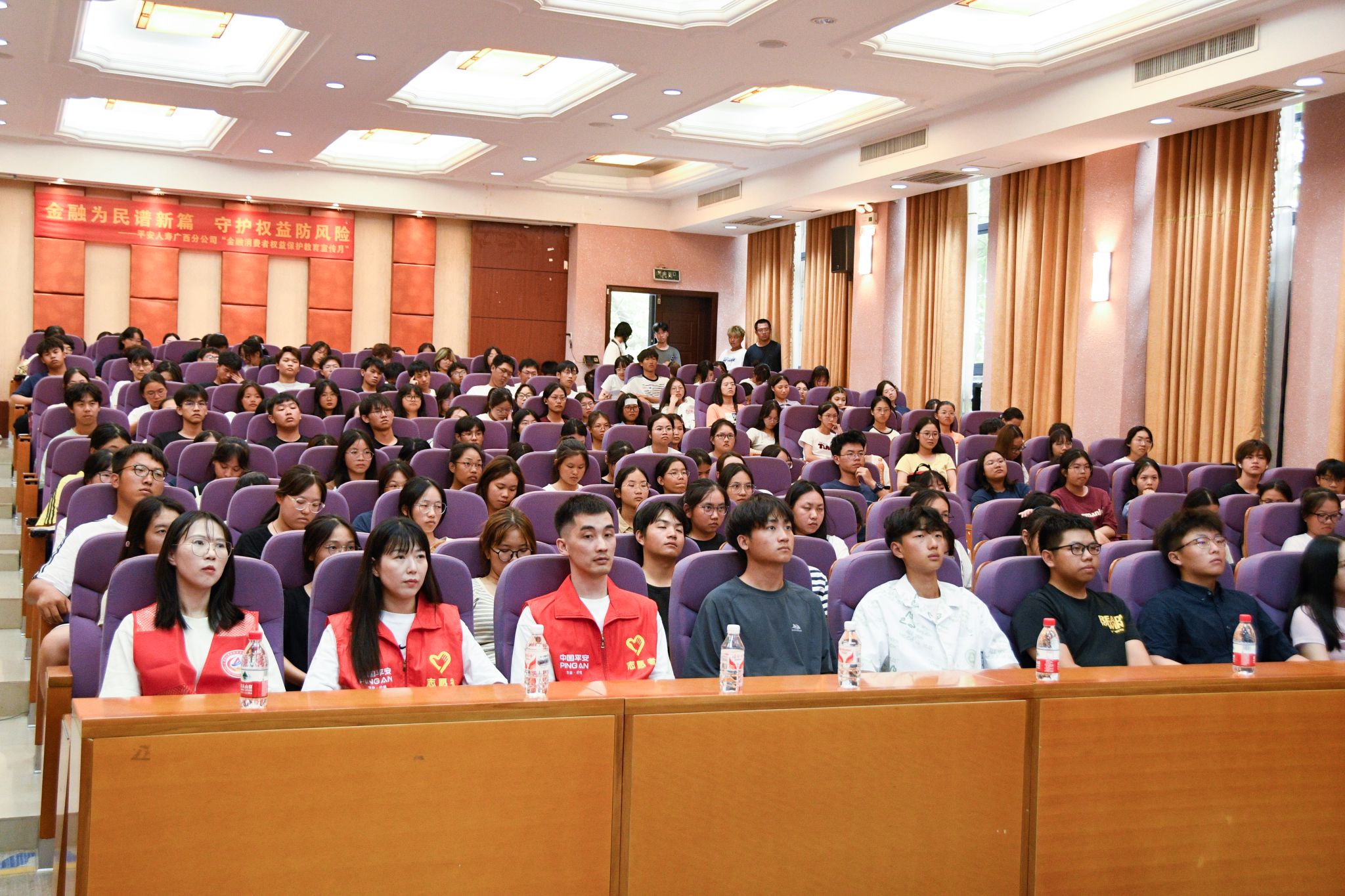 平安人壽廣西分公司、消費者權(quán)益保護部總經(jīng)理何媛運用經(jīng)典案例,講述金融消費者八大權(quán)益,即知情權(quán)、自主選擇權(quán)、公平交易權(quán)、財產(chǎn)安全權(quán)、信息安全權(quán)、依法求償權(quán)、受教育權(quán)、受尊重權(quán),告訴同學們要樹立正確消費觀,防范低息貸款風險。