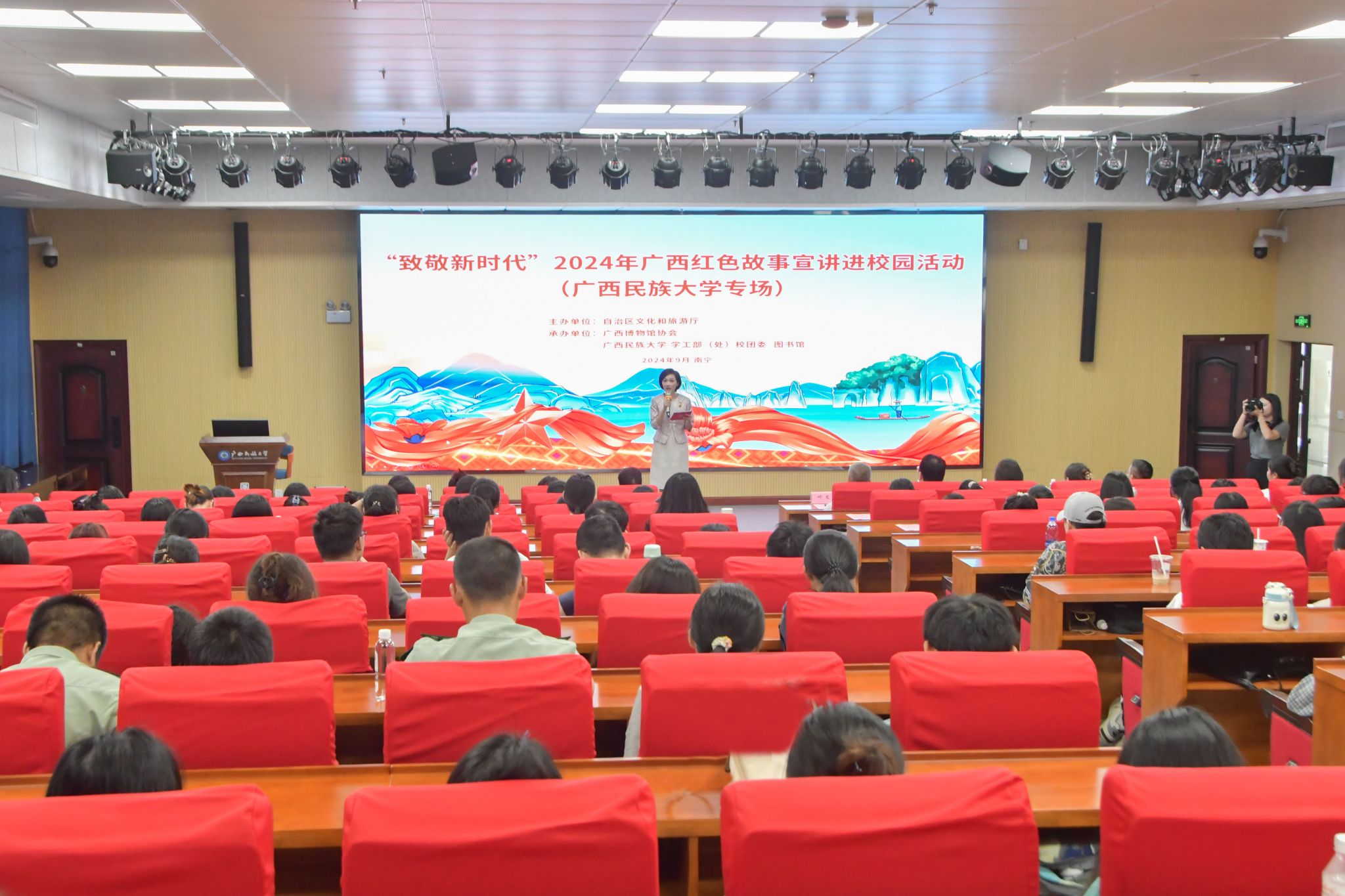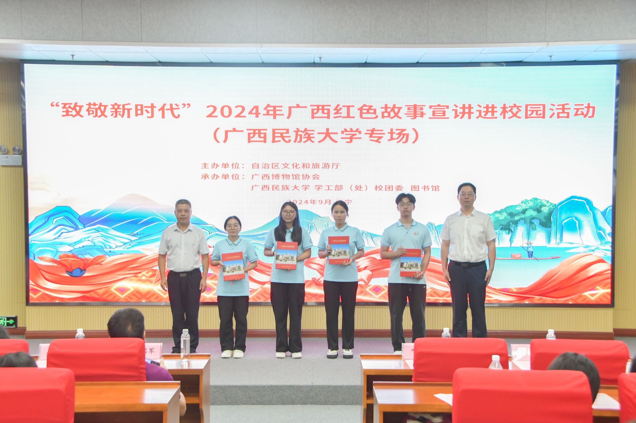 【大學(xué)生通訊社報(bào)道】9月23日下午,“致敬新時(shí)代”2024年廣西紅色故事宣講進(jìn)校園活動(dòng)在廣西民族大學(xué)相思湖校區(qū)圖書館舉行,自治區(qū)文化和旅游廳革命文物處、廣西博物館、廣西民族博物館、學(xué)校團(tuán)委、圖書館負(fù)責(zé)人,200余名學(xué)生代表參加活動(dòng)。來自廣西各地的八名優(yōu)秀講解員以精彩的宣講技藝,為觀眾呈現(xiàn)了一場(chǎng)高質(zhì)量紅色故事盛宴。