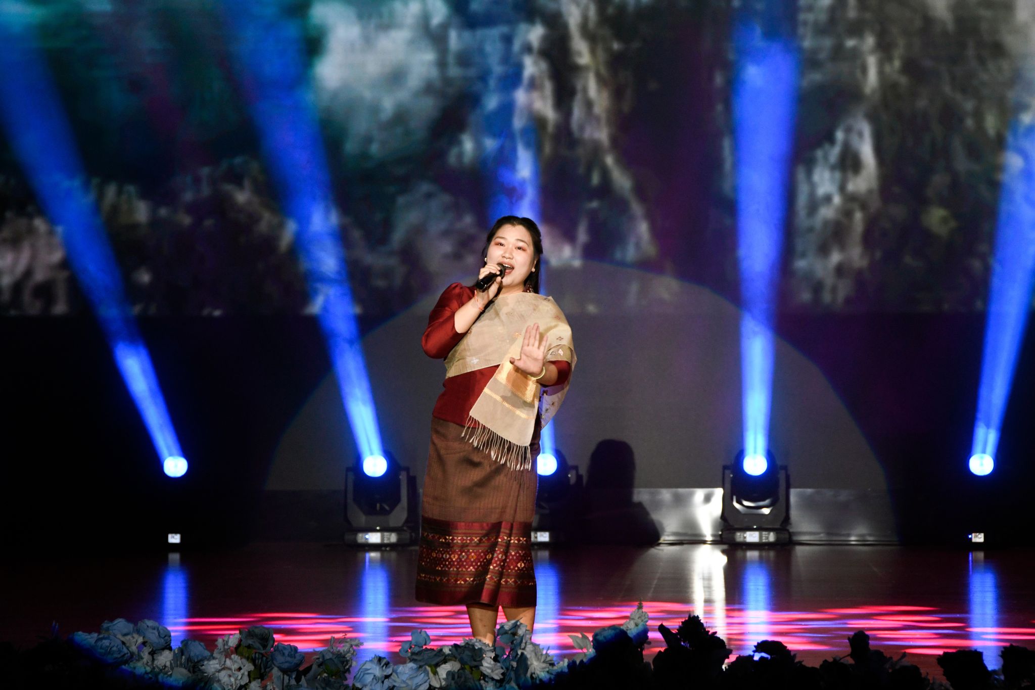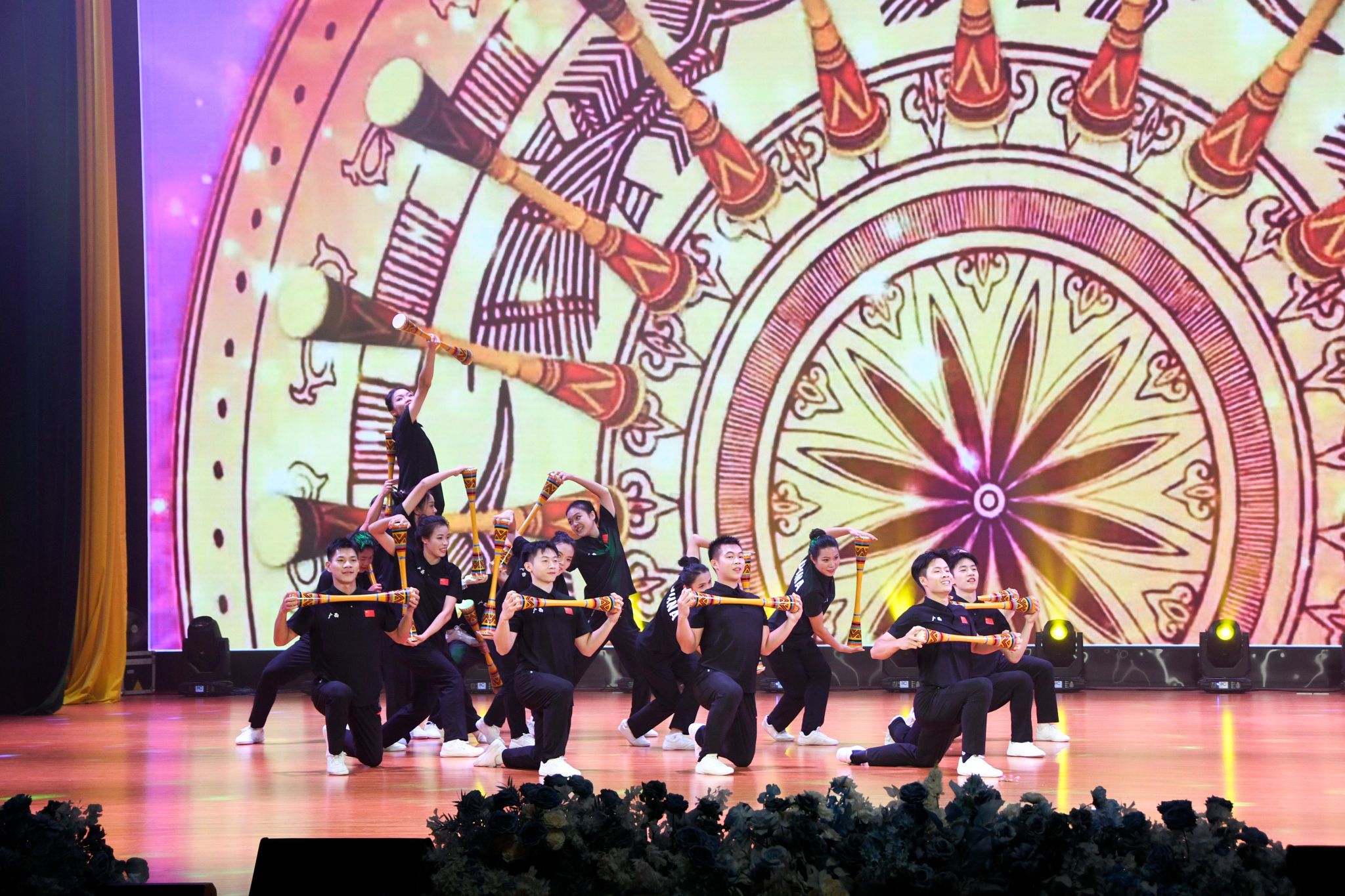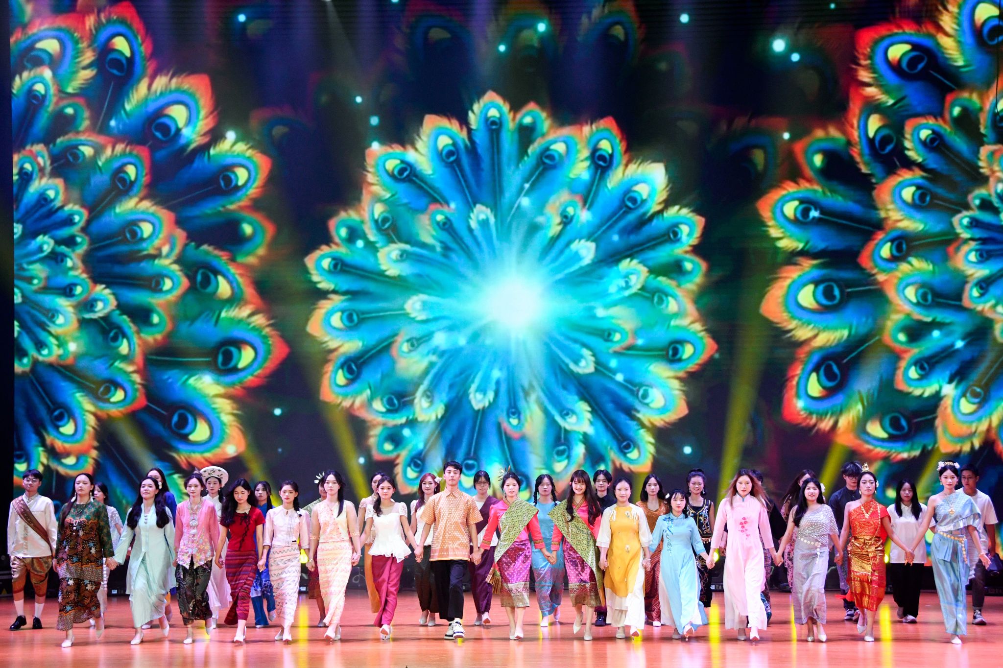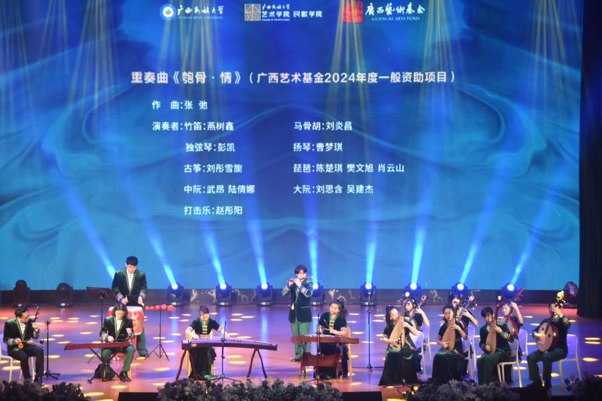 慶典在藝術學院/民歌學院“那藍布壯”室內樂團帶來的重奏曲《匏骨·情》中拉開帷幕,和諧悅耳的音樂融合了壯族與京族的民族樂器,展現廣西人民對熱土的深情與厚愛。老撾留學生的歌曲《老撾真美麗》和越南留學生的舞蹈Cay ?a quán d?c 帶領觀眾領略老撾山水、越南風情。梁遠老師、李雅婧老師的《紅梅贊》表達對房英、陶紅、曾瑞蓮等資深教授的崇高敬意。東南亞特色服裝走秀、留學生的歌曲串燒、校友歌曲舞蹈,以及舞臺劇等節目使現場掌聲雷動,觀眾的回應將氣氛推向高潮。